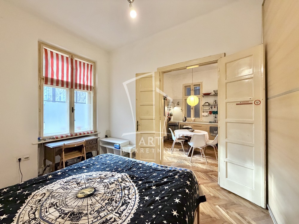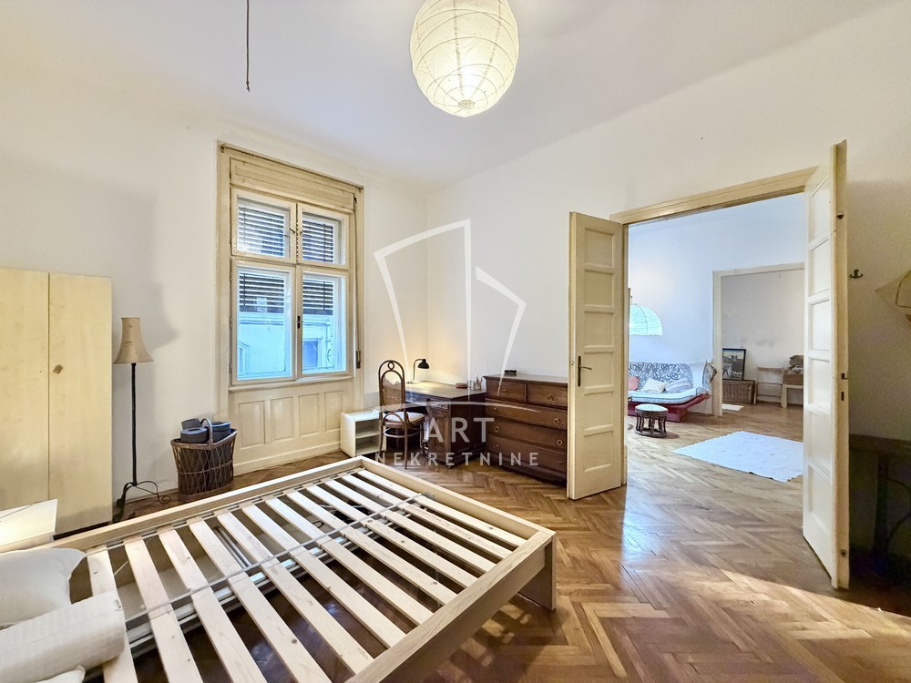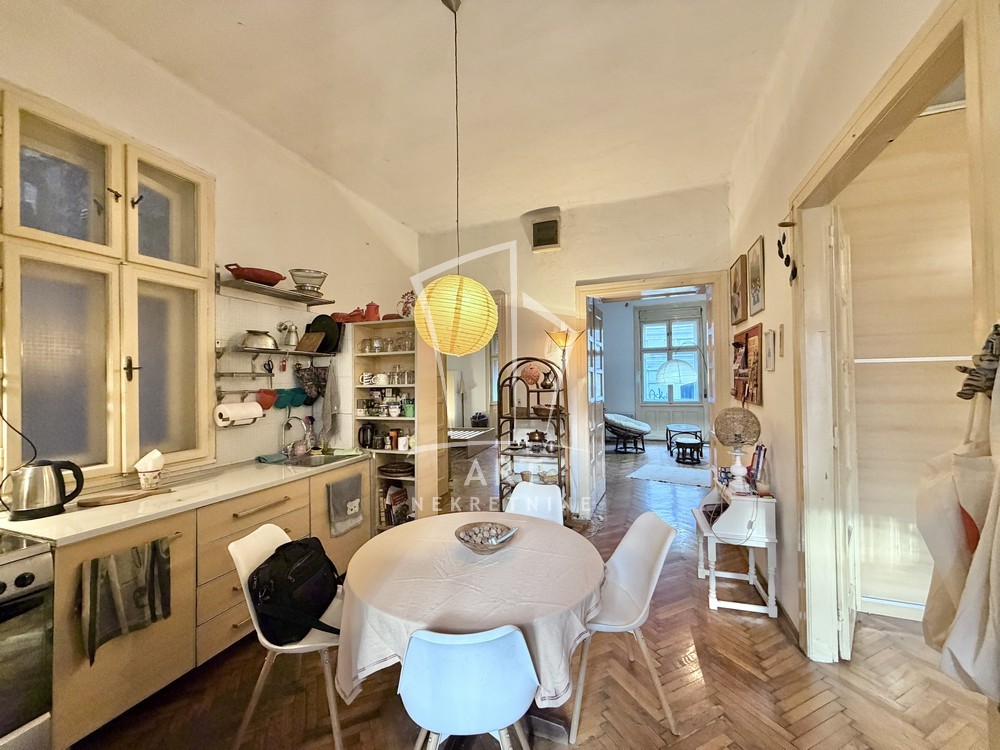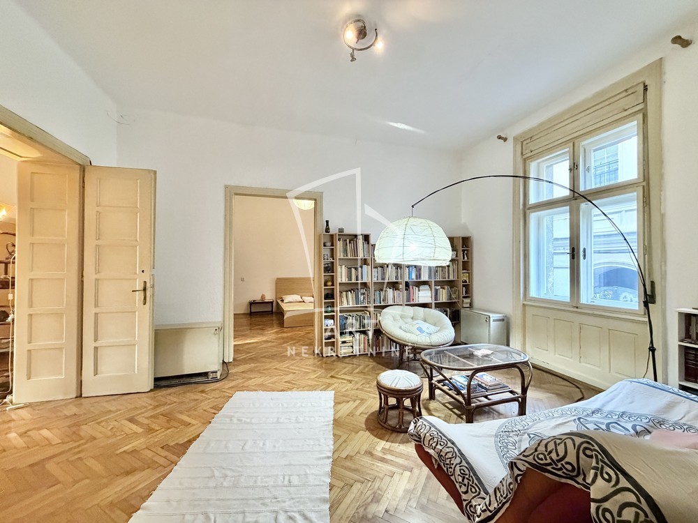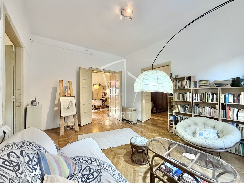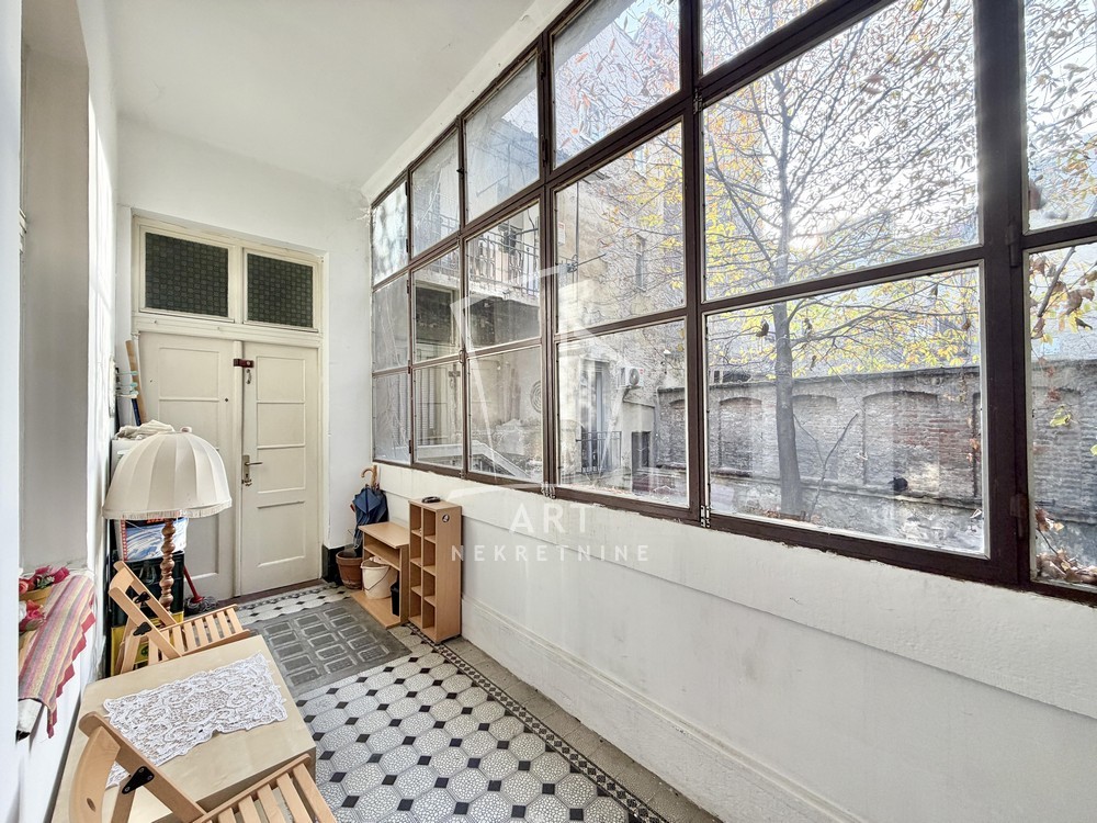 Prodaje se autentičan salonski stan u centru Beograda, u mirnoj ulici na par minuta od Knez Mihailove i Kalemegdana, u zgradi s kraja 20-ih godina prošlog veka sa lepim, uređenim dvorištem.