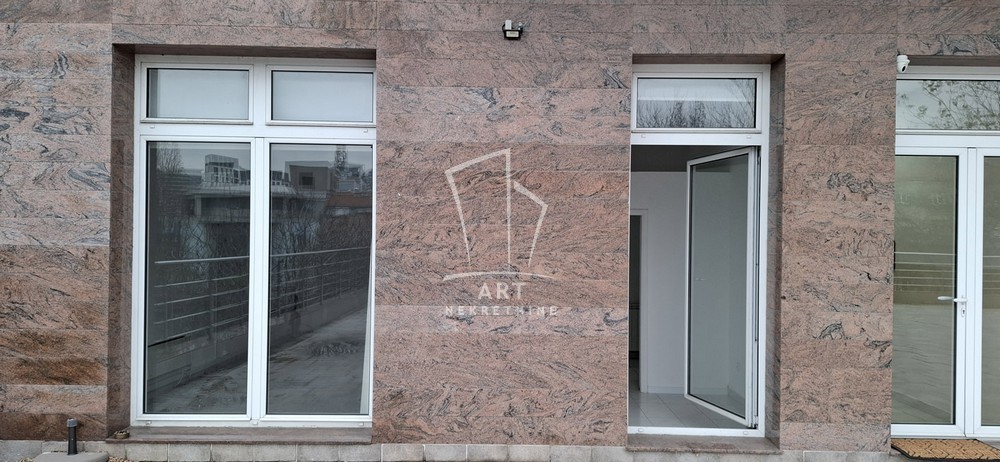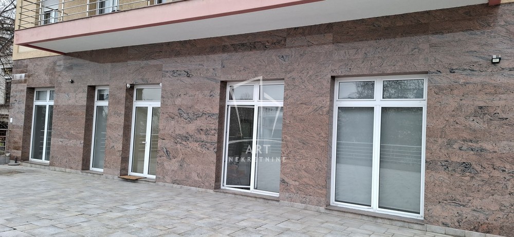 Struktura poslovnog prostora: jedna (prostrana) prostorija i mokri čvor, sa direktnim izlazom na prostranu terasu objekta, orijentisanu ka mirnom dvorišnom delu, okruženu starim stablima drveća i prelepim pogledom na grad.