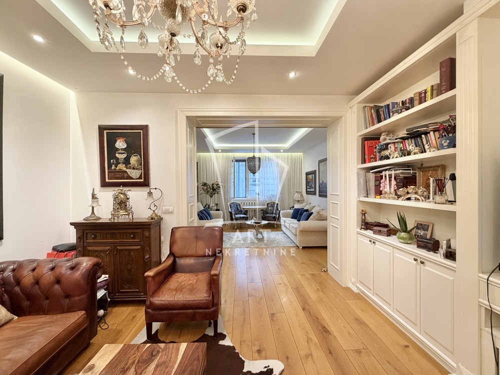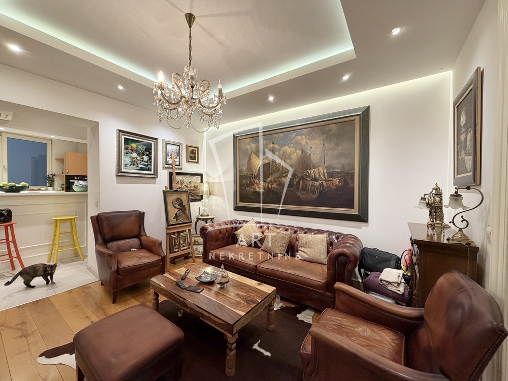 Prodaje se uknjižen trosoban stan površine 87m2 merene površine 95m2 u ulici Kosovskoj u srcu Beograda, na nekoliko stotina metara Skupštine, osnovne škole, nekoliko trgovinskih lanaca, stan se nalazi na drugom spratu uredno održavane zgrade koja poseduje lift. Stan je potpuno renoviran i uređen sa stilom, u stanu se nalaze vrhunski komadi nameštaja a spušteni plafoni sa pažljivo biranom rasvetom, zidova od ukrasnih cigala i umetničkim delima daje stanu posebnu notu.