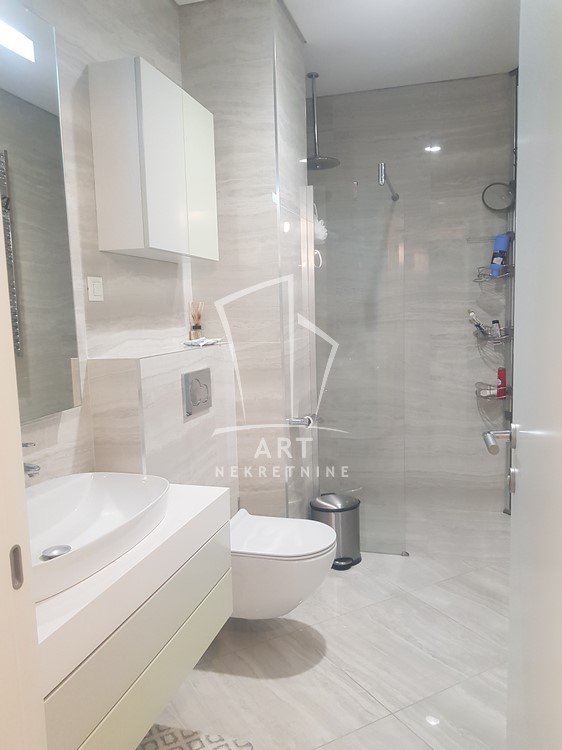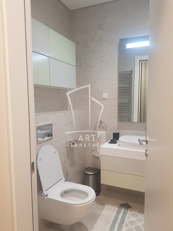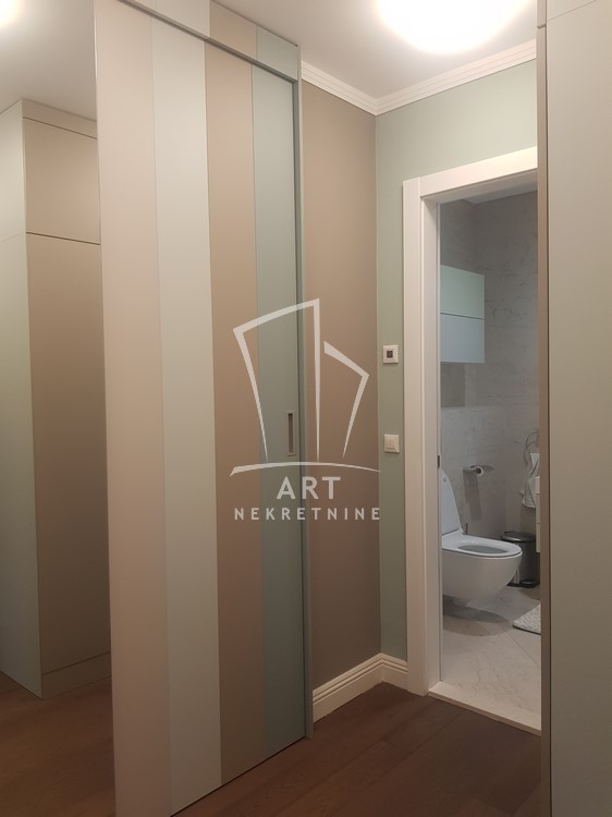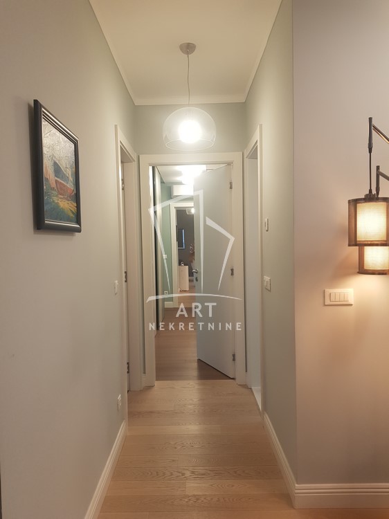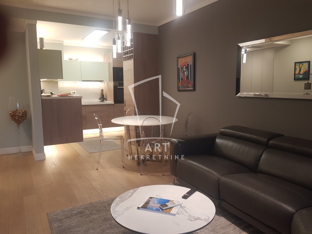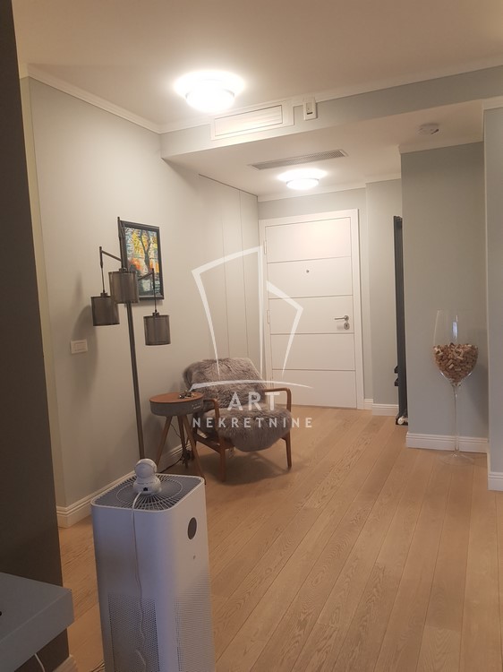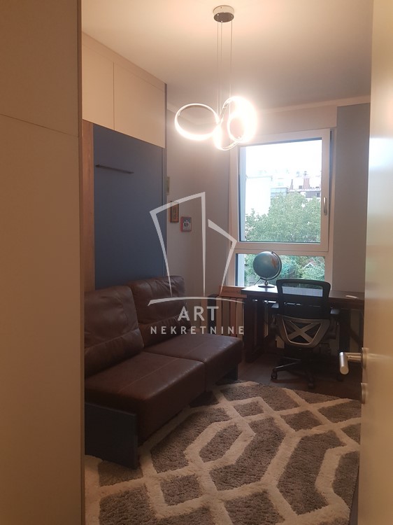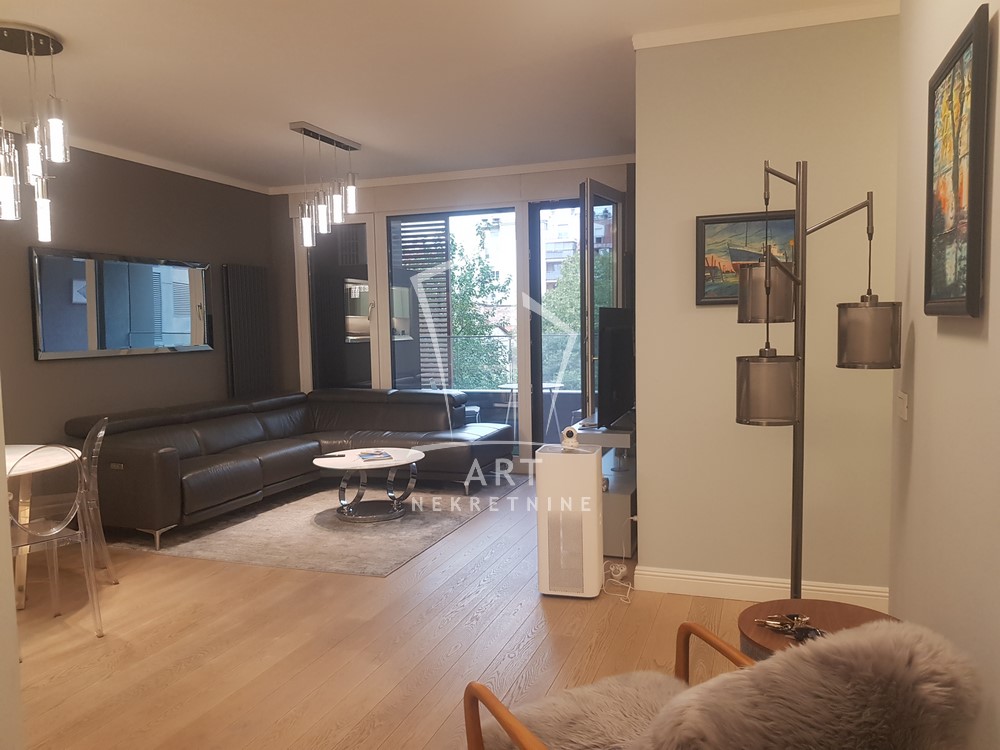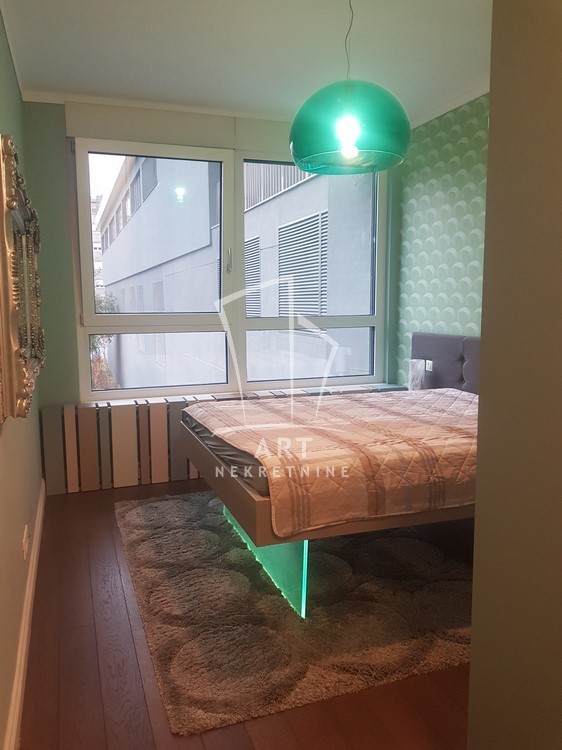 U prilici smo da vam ponudimo potpuno opremljen, lux stan na prestižnoj lokaciji u novoizgrađenoj zgradi Skyline, blizu Ambasada i stranih predstavništva. Stan je komforan modernog koncepta, otvorenog tipa , sastoji se iz kuhinje, trpezarije i dnevnog boravka, dve spavaće sobe, dva kupatila, terase, Modernog dizajna sa dosta mesta za odlaganje tako da je prostor veoma lepo iskprišćen.