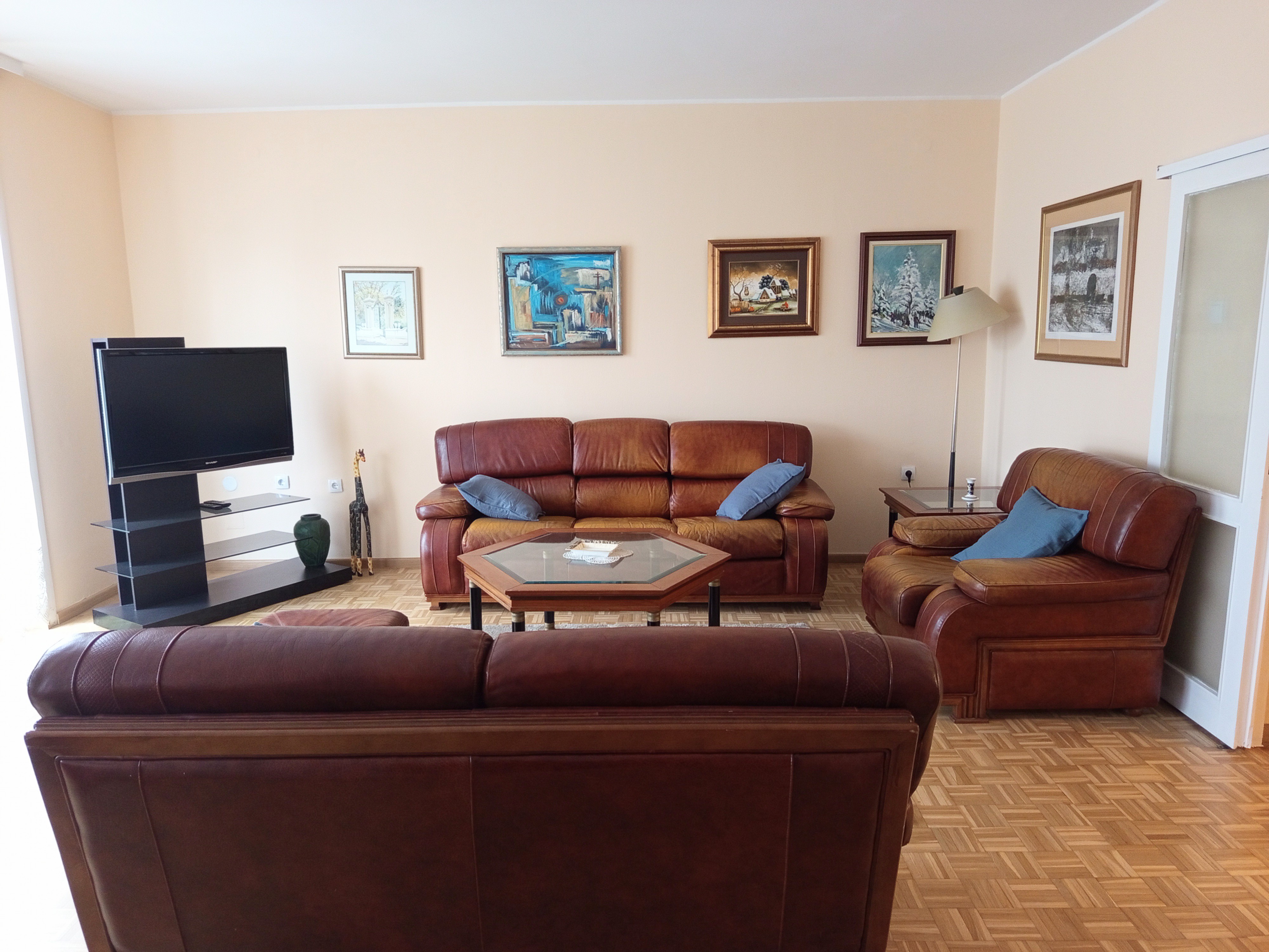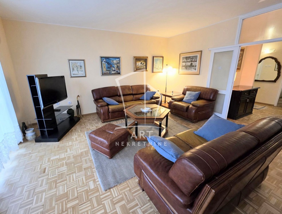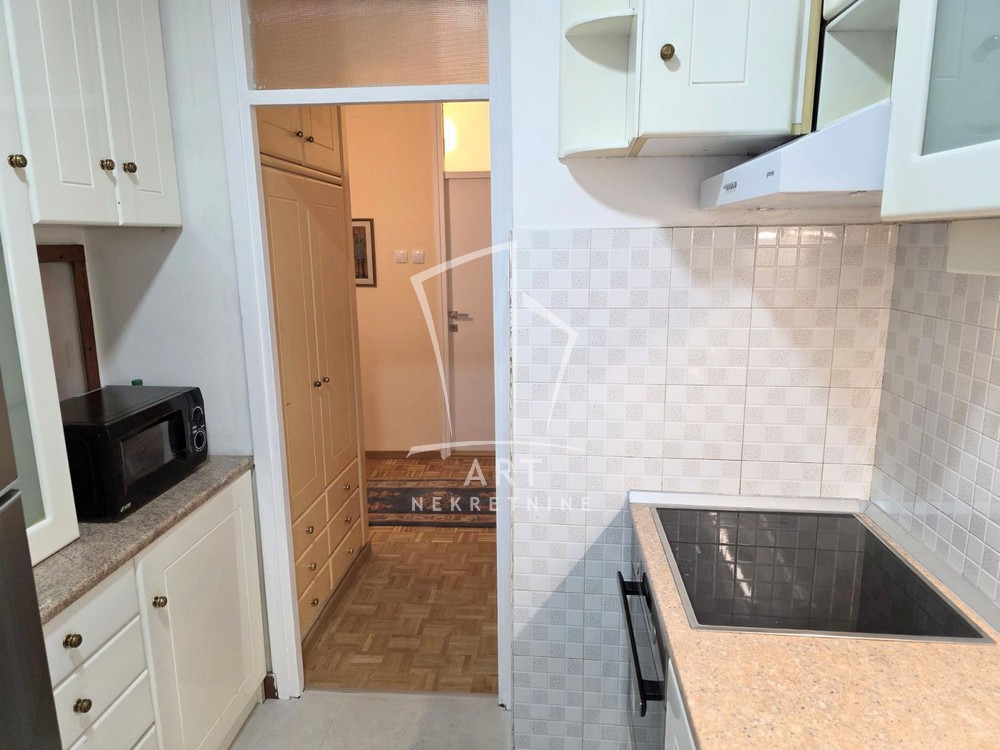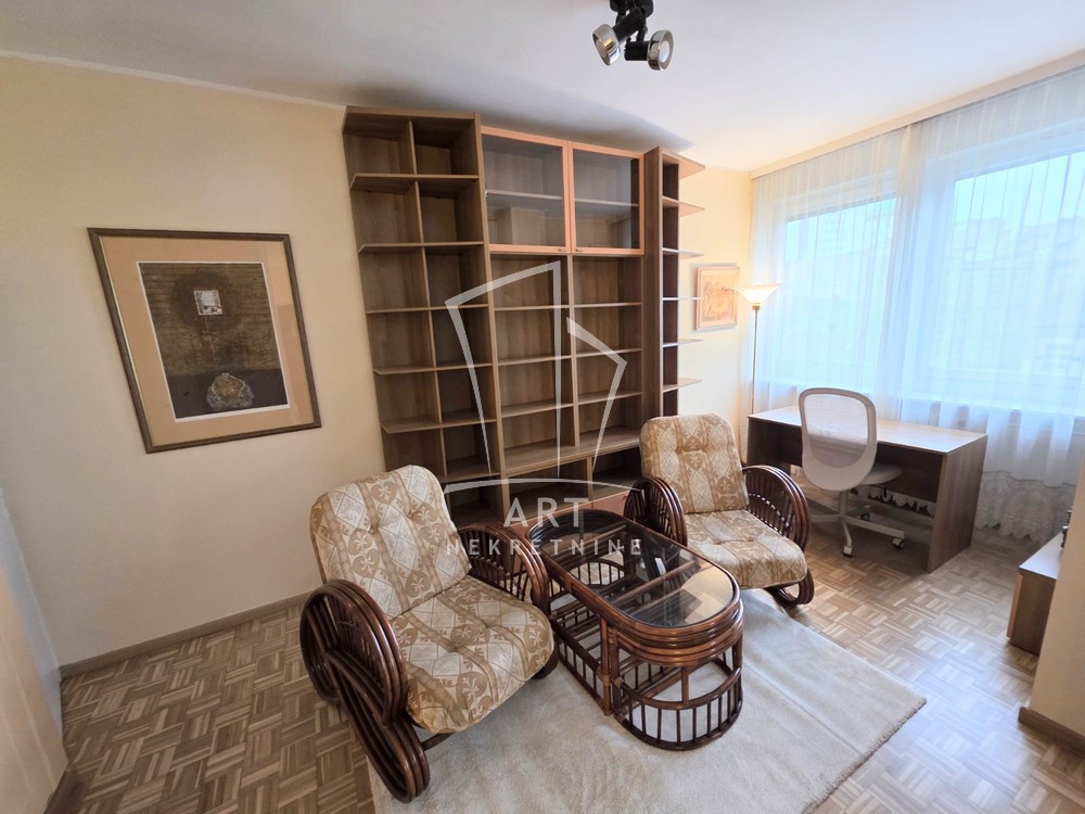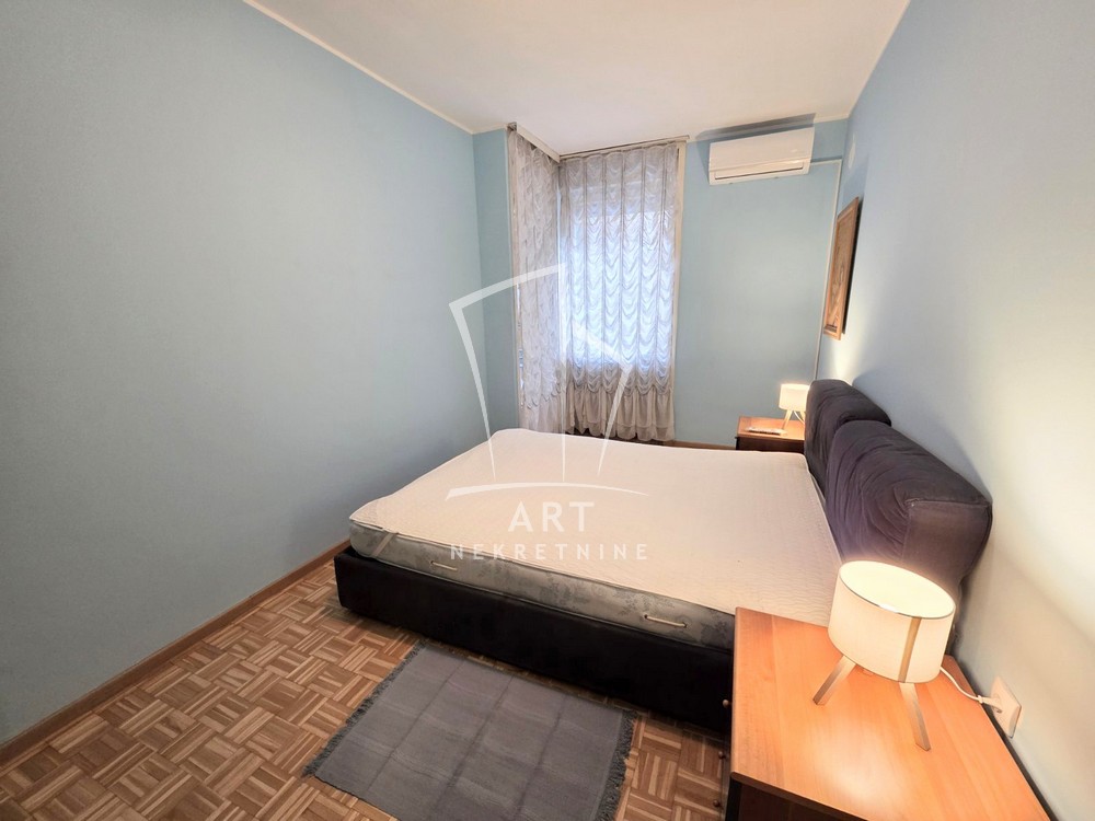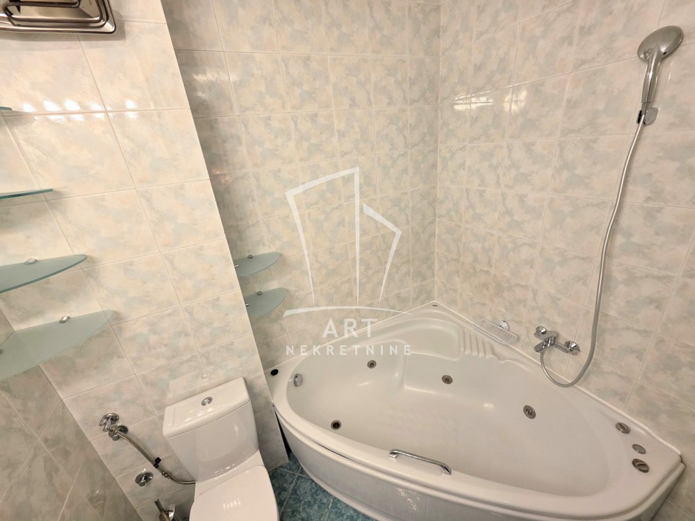 Izdaje se odličan, komforan ,petosoban stan na izuzetnoj lokaciji. Stan poseduje: hodnik, veliki dnevni boravak, tri spavaće sobe, radnu sobu, odvojenu kuhinju i trpezariju, kupatilo i toalet i terasu. Ima centralno grejanje, klime, protočni bojler. Veoma svetao stan. Odličan raspored prostorija.