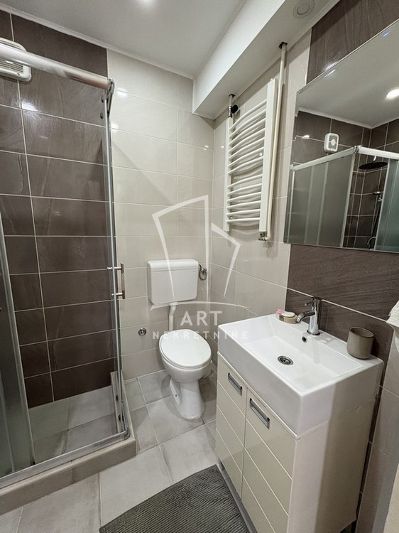 Stan se sastoji iz dnevnog boravka koji izlazi na prostranu terasu,spavaće sobe,kuhinje sa trpezarijom, ostavom I lođom.