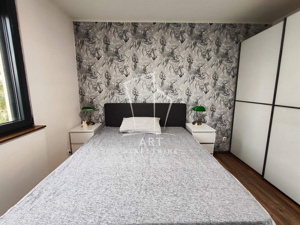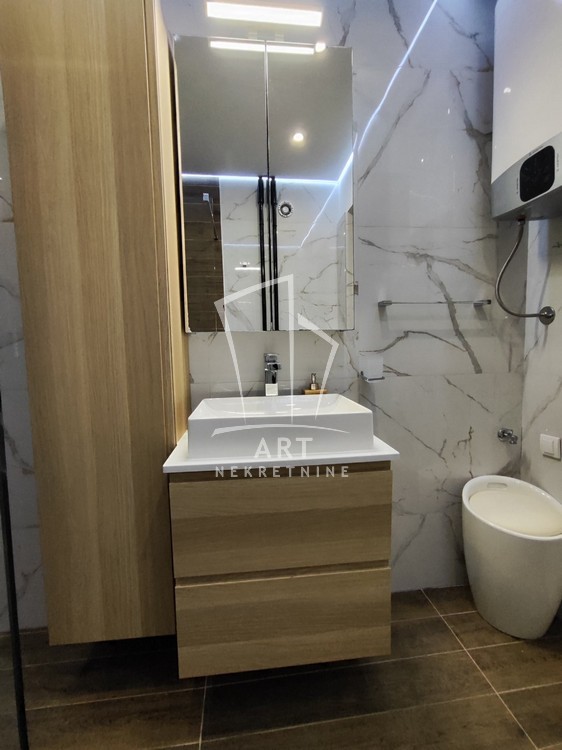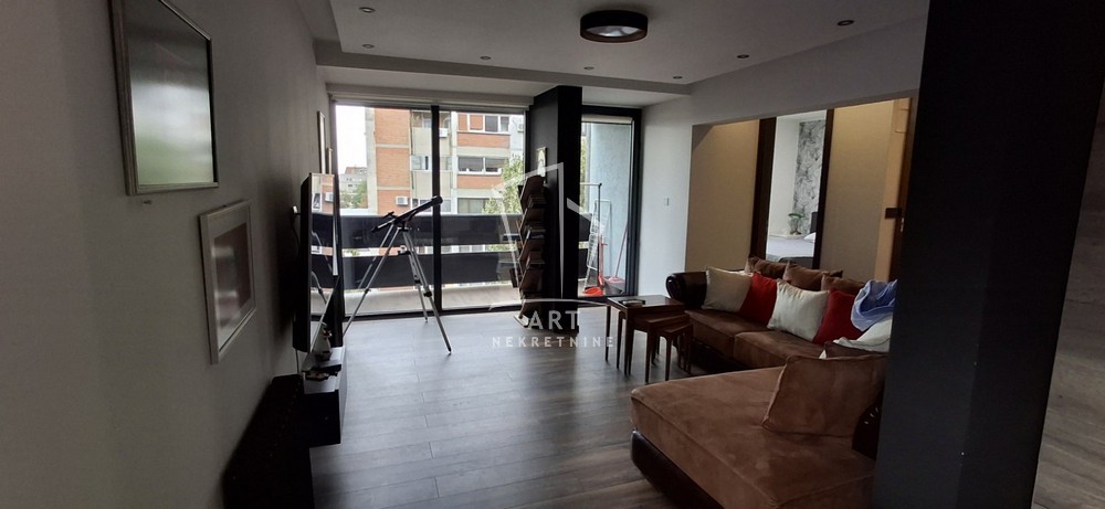 Stan se izdaje kompletno namešten, moderno je opremljen i nalazi se na četvrtom spratu zgrade od ukupno deset. Sastoji se od predsoblja, dnevne sobe, trpezarije, spavaće sobe, kupatila i lođe.
