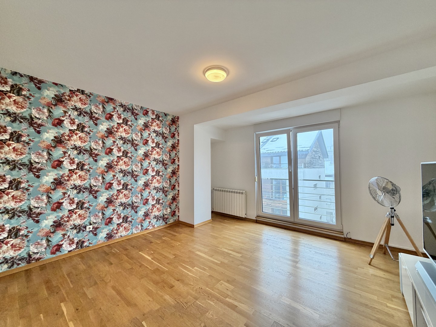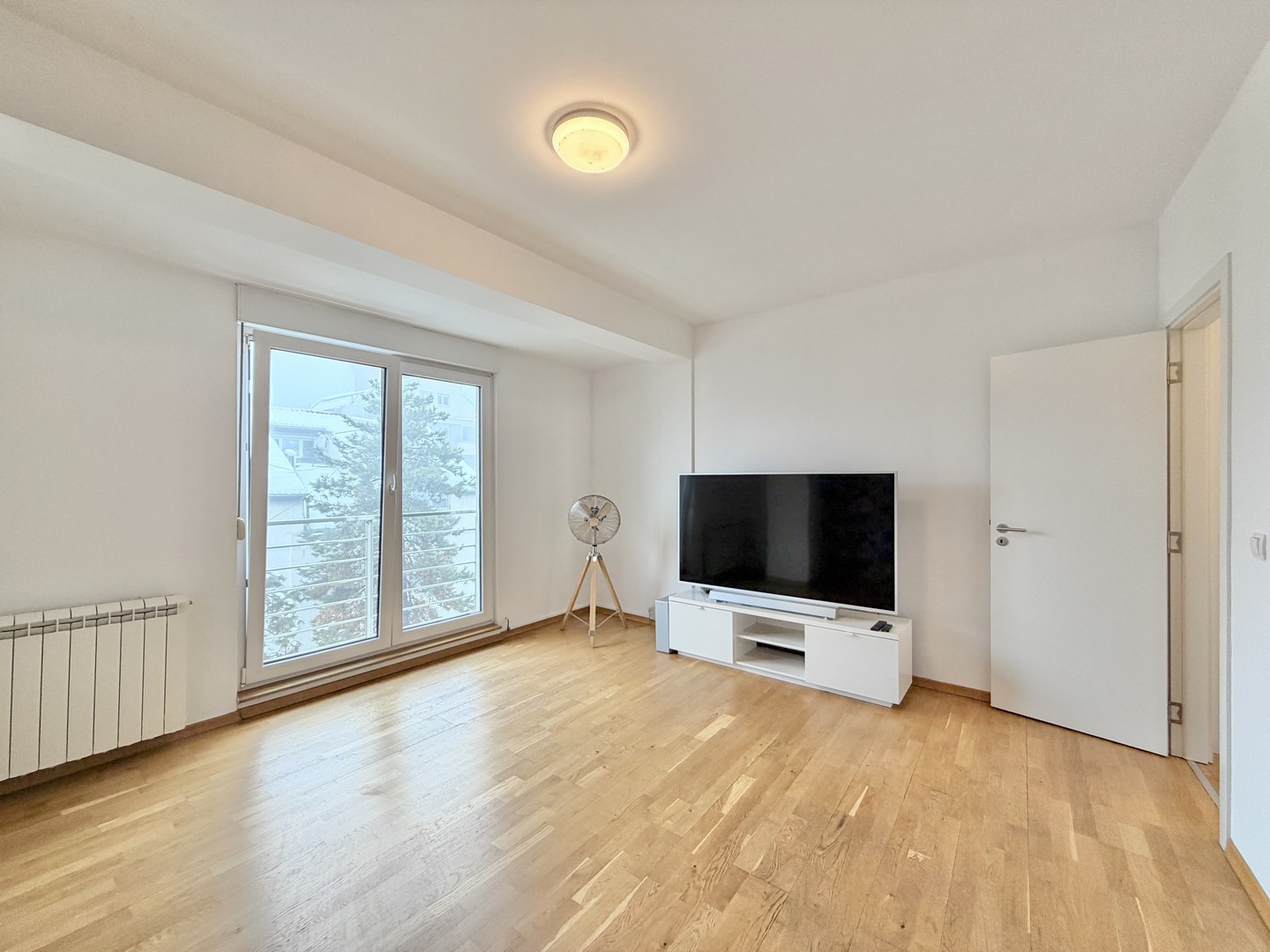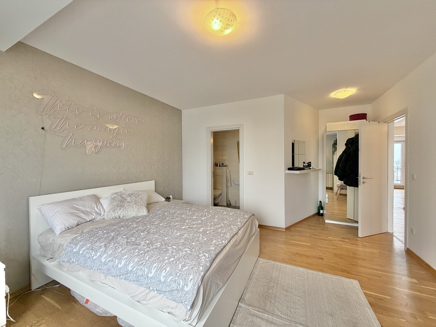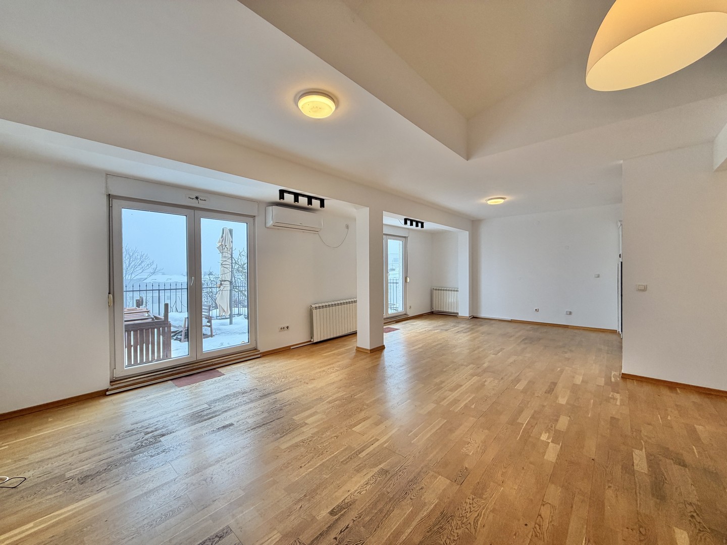 Stan ima visoke plafone i dvostrano je orjentisan, pa je svetao tokom čitavog dana. Terasa gleda ka unutrašnjem delu sa koje se pruža panoramski pogled na Beograd.