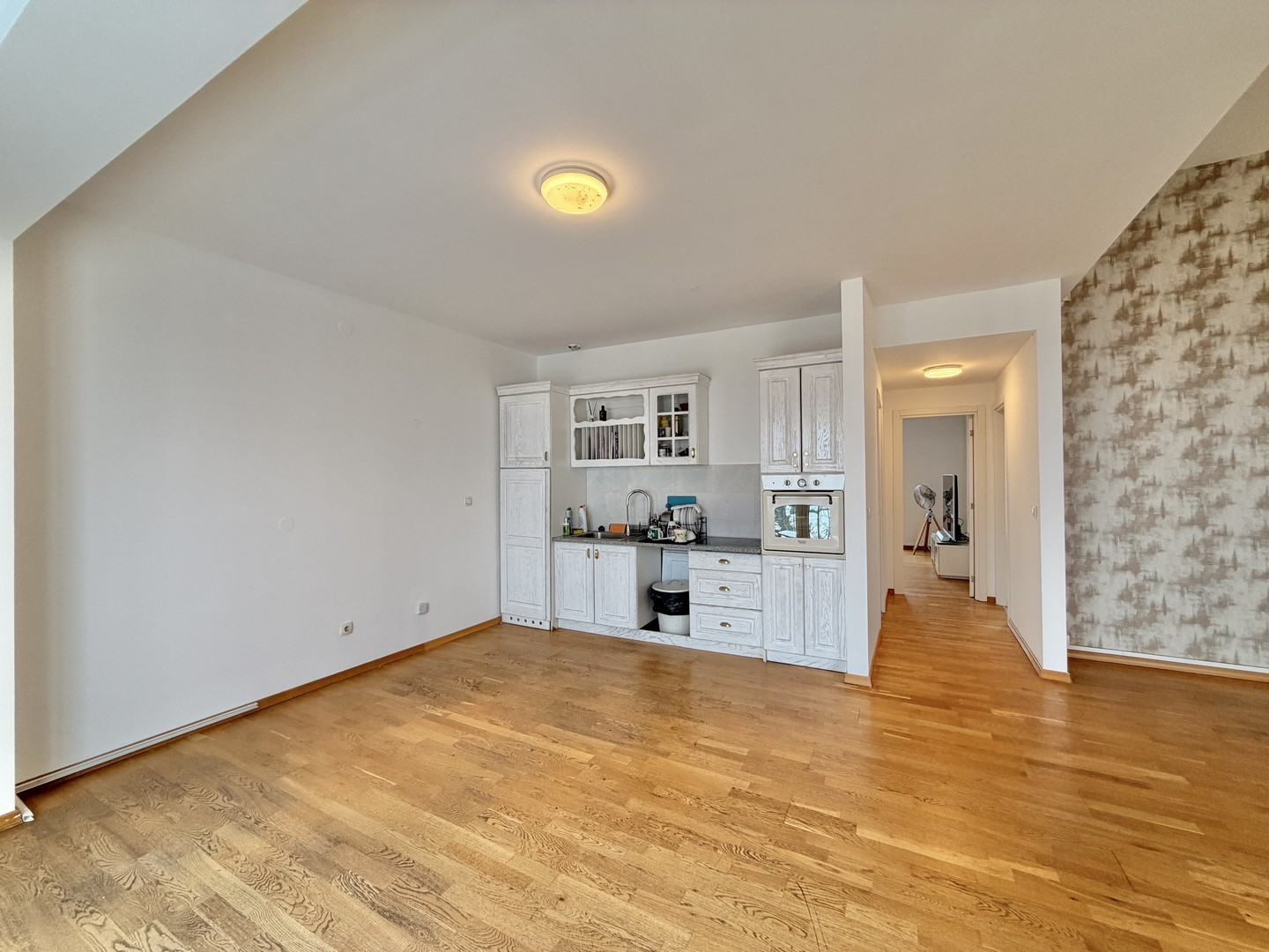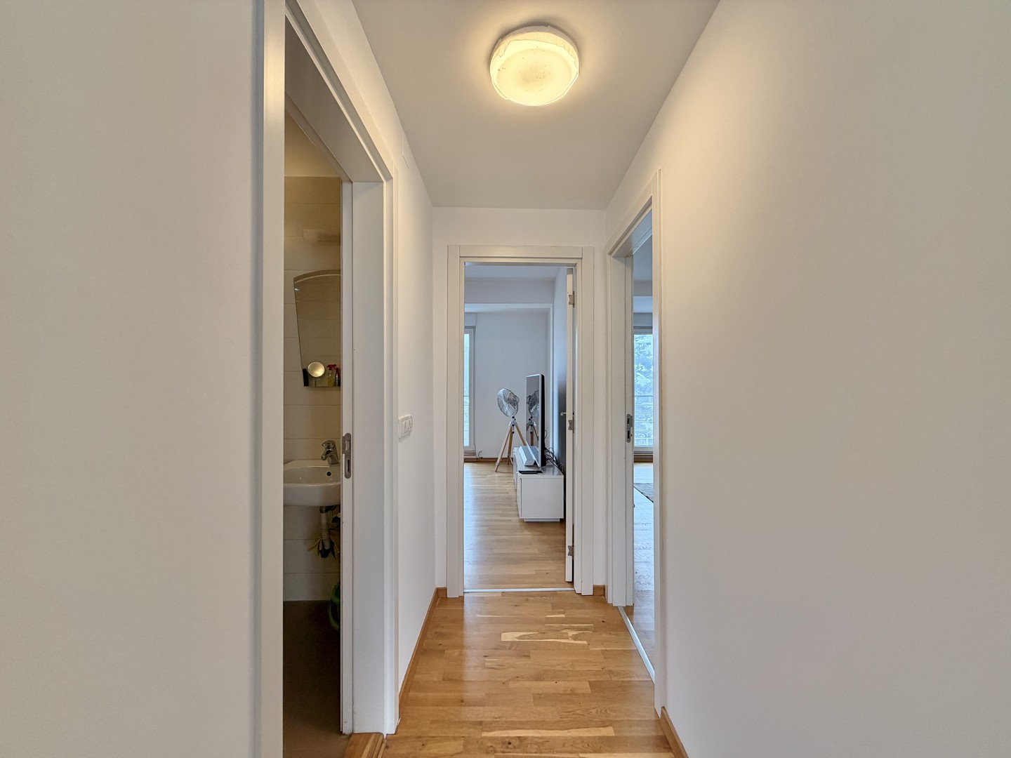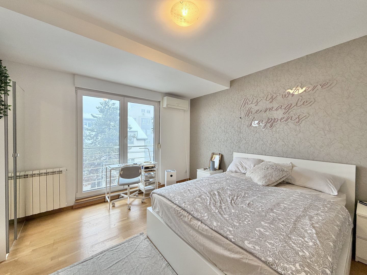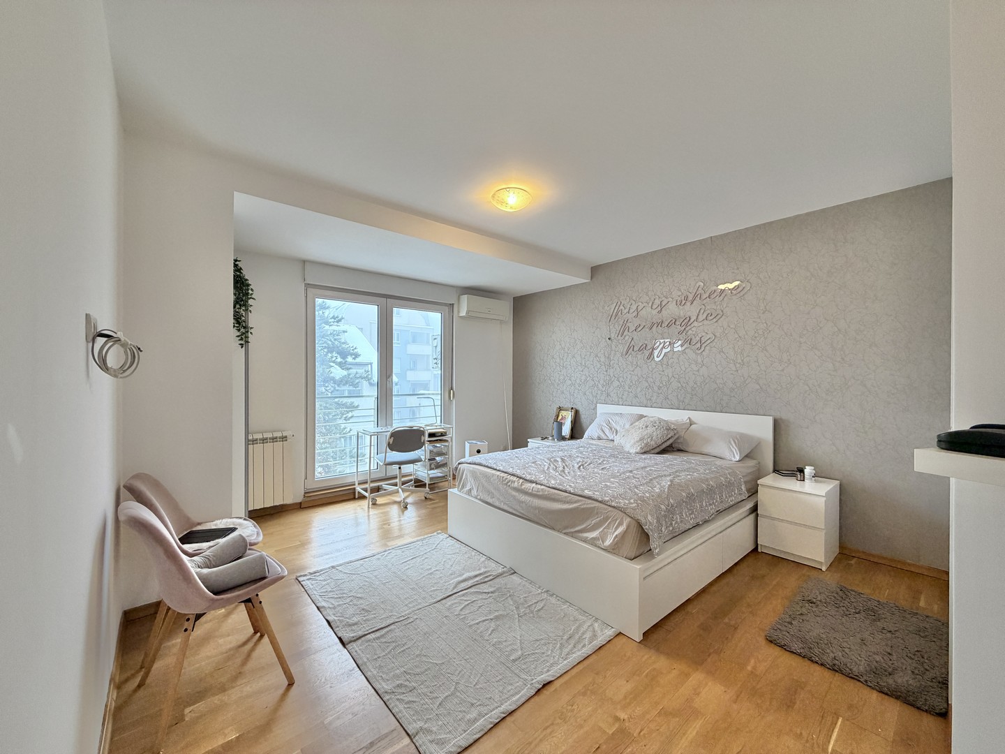 Stan ima visoke plafone i dvostrano je orjentisan, pa je svetao tokom čitavog dana. Terasa gleda ka unutrašnjem delu sa koje se pruža panoramski pogled na Beograd.