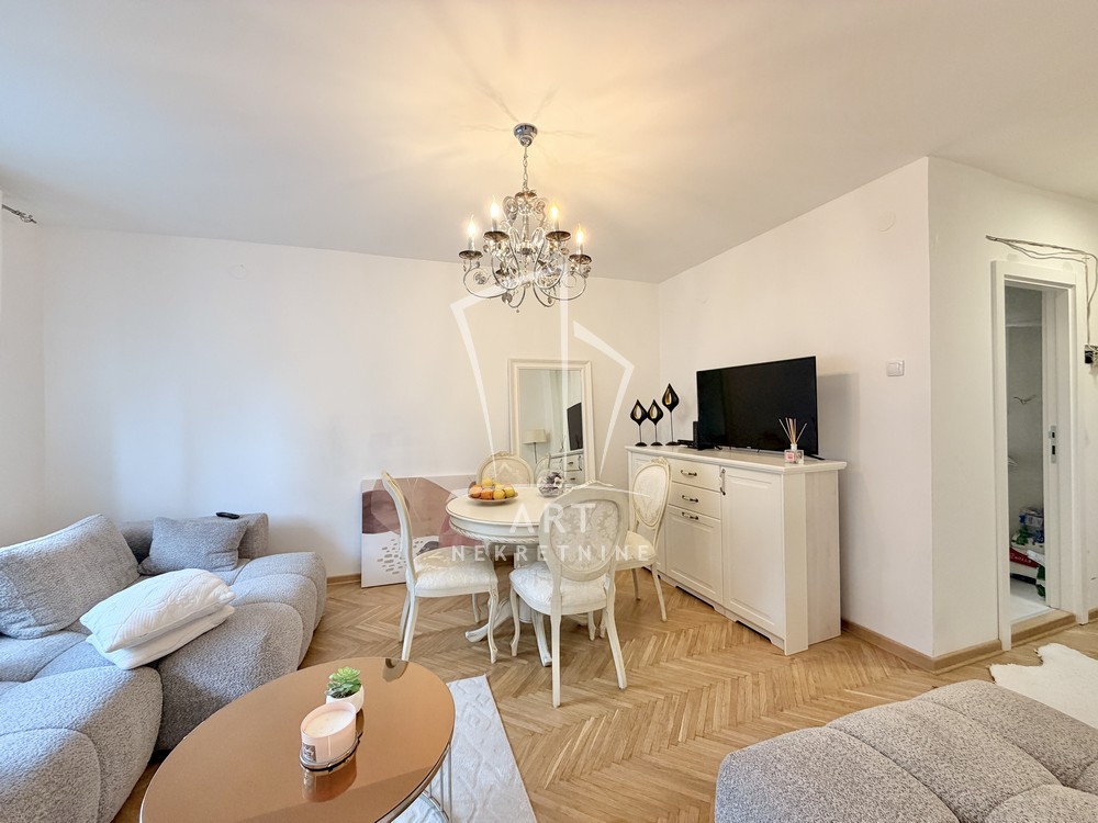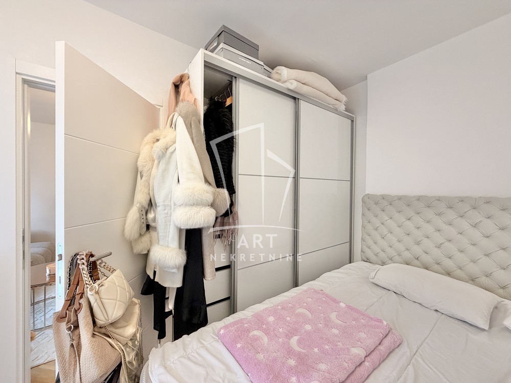 Sastoji se od ulaznog prostora, dvevnog boravka sa trpezaijom, prostrane spavace sobe, kuhinje, kupatila I velike I lepe terase.
