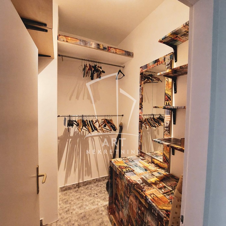 Poseduje dve spavaće sobe, dnevnu sa trpezarijim, kuhinju, kupatilo, ostavu sa prostorom za odlaganje garderobe.