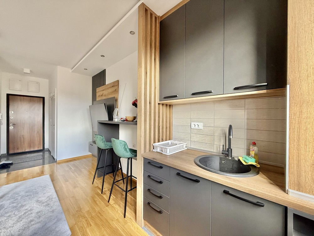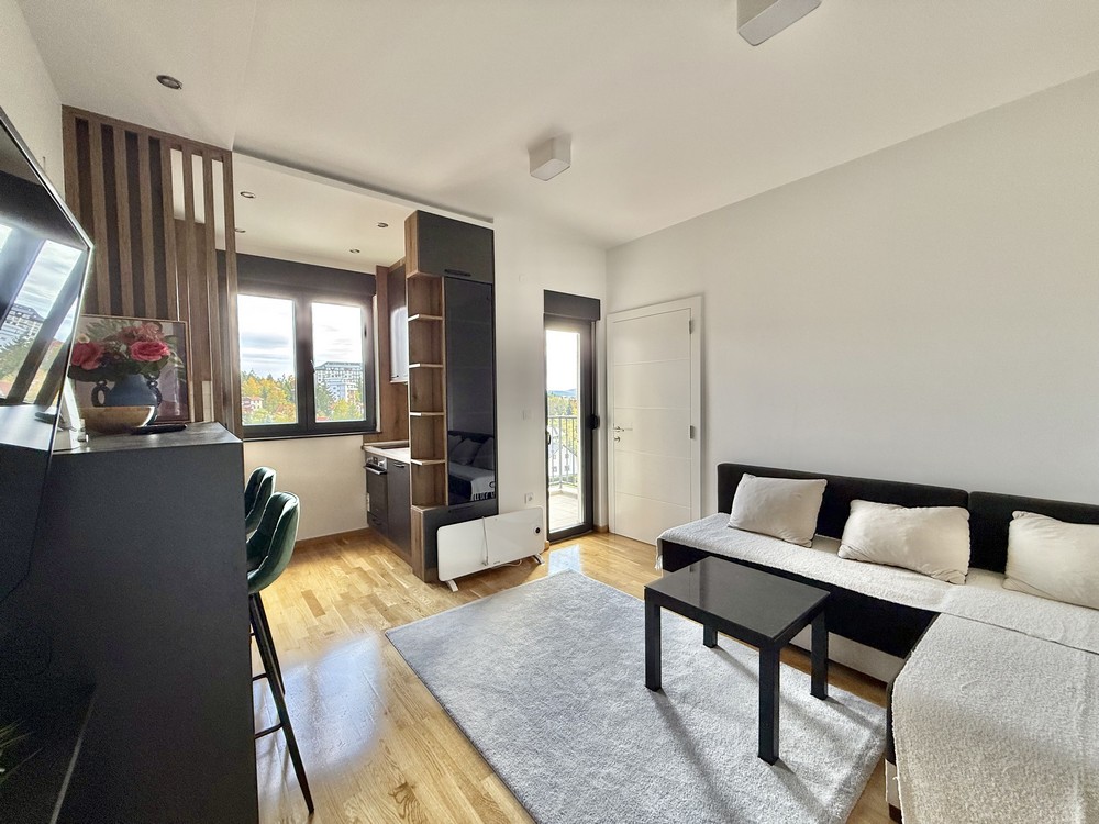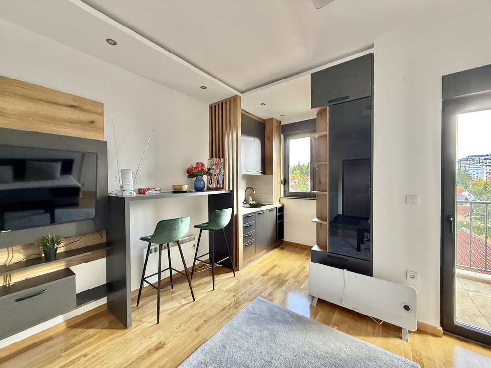 Po strukturi je jednoiposoban i se sastoji se od predsoblja, dnevnog boravka sa kuhinjom i trpezarijom, spavaće sobe, kupatila i terase. Nalazi se na trećem spratu od ukupno šest. Moderno je opremljen. Orijentisan je prema zapadu. Grejanje je na norveške radijatore, a zahvaljujući smart home sistemu, možete ga kontrolisati na daljinu.