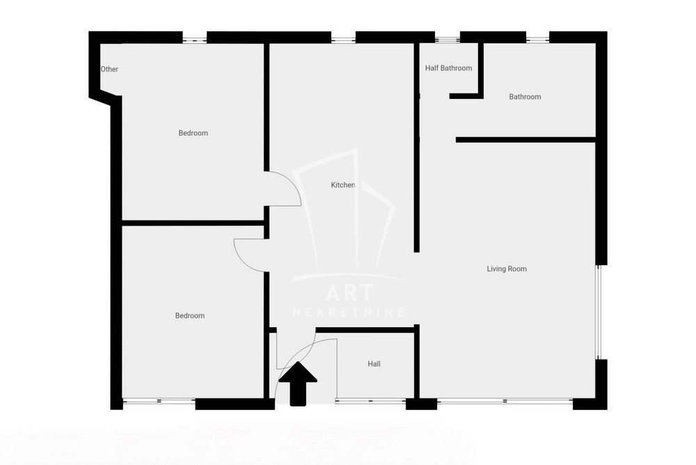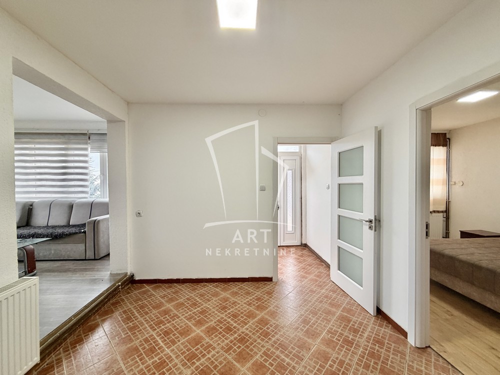 Sastoji se od ulaznog hodnika, trpezarije sa kuhinjom, dve spavaće, dnevne sobe i kupatila.