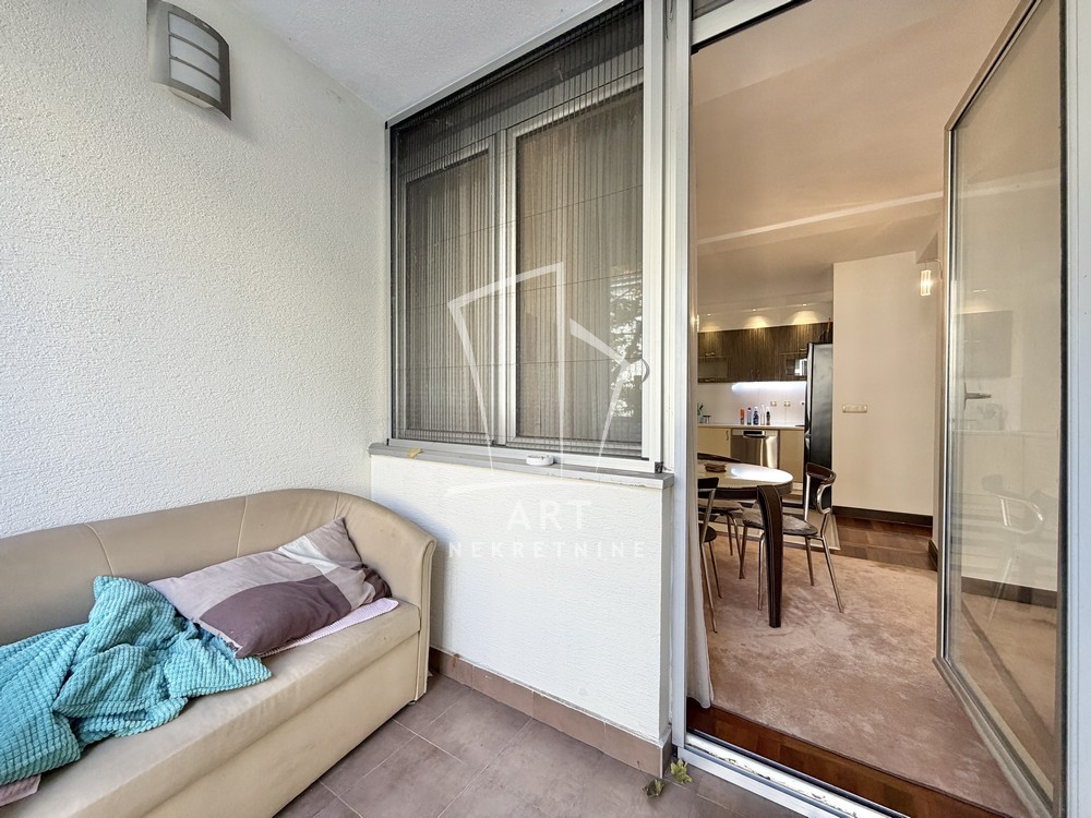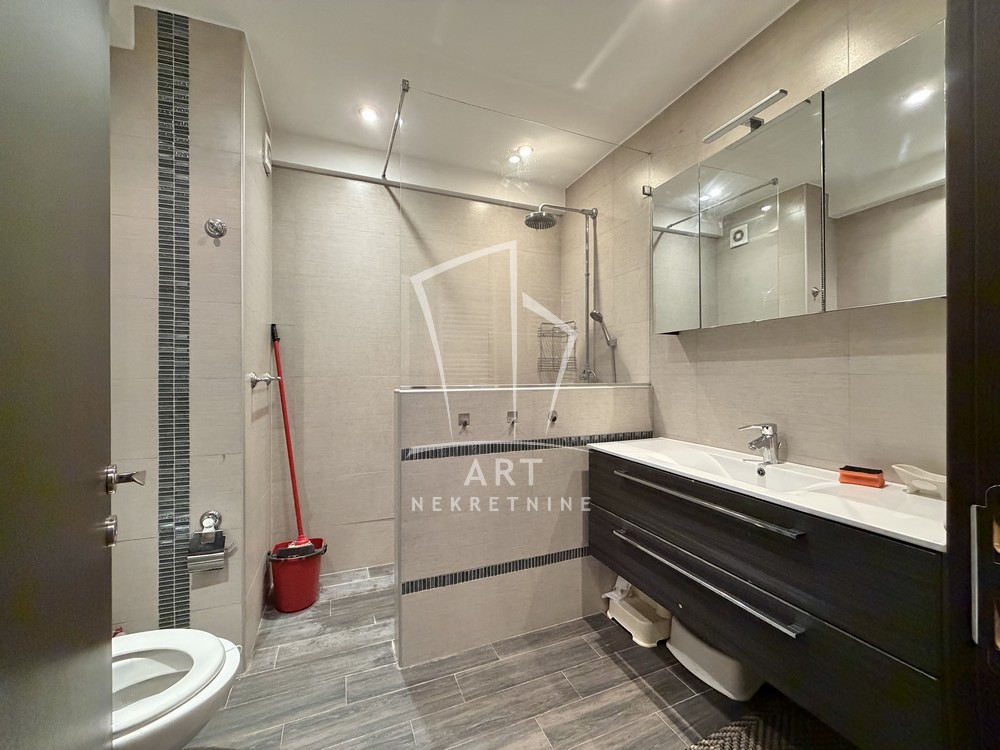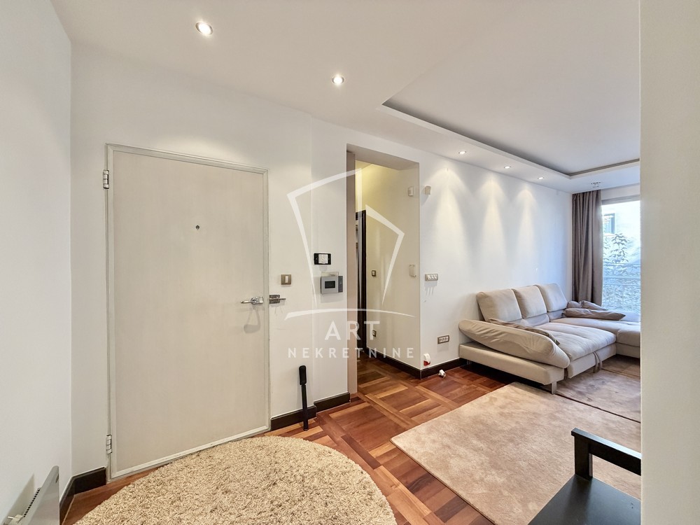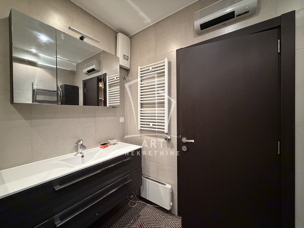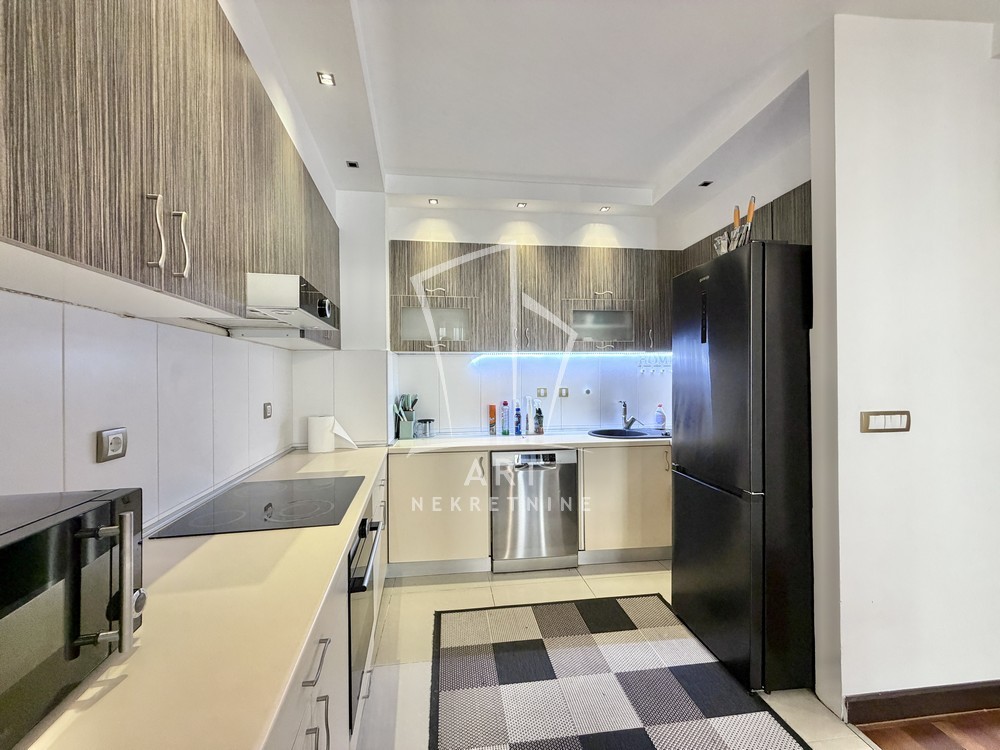 U ponudi je trosoban stan, kompletno namešten kvalitetnim nameštajem, smešten u zgradi novije gradnje u srcu Dorćola.