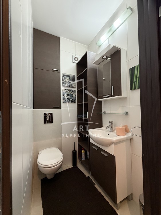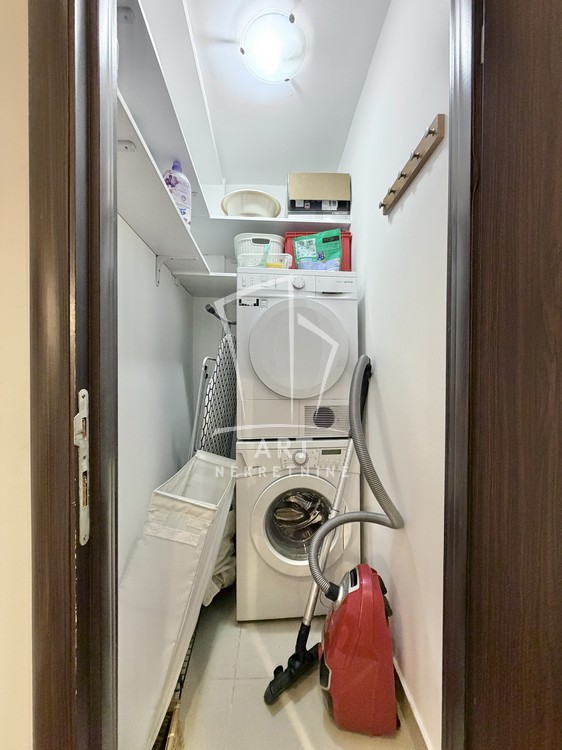 Prostran dnevni boravak, trpezarija, kuhinja, dve spavaće sobe, kupatilo, toalet, ostava i lođa.