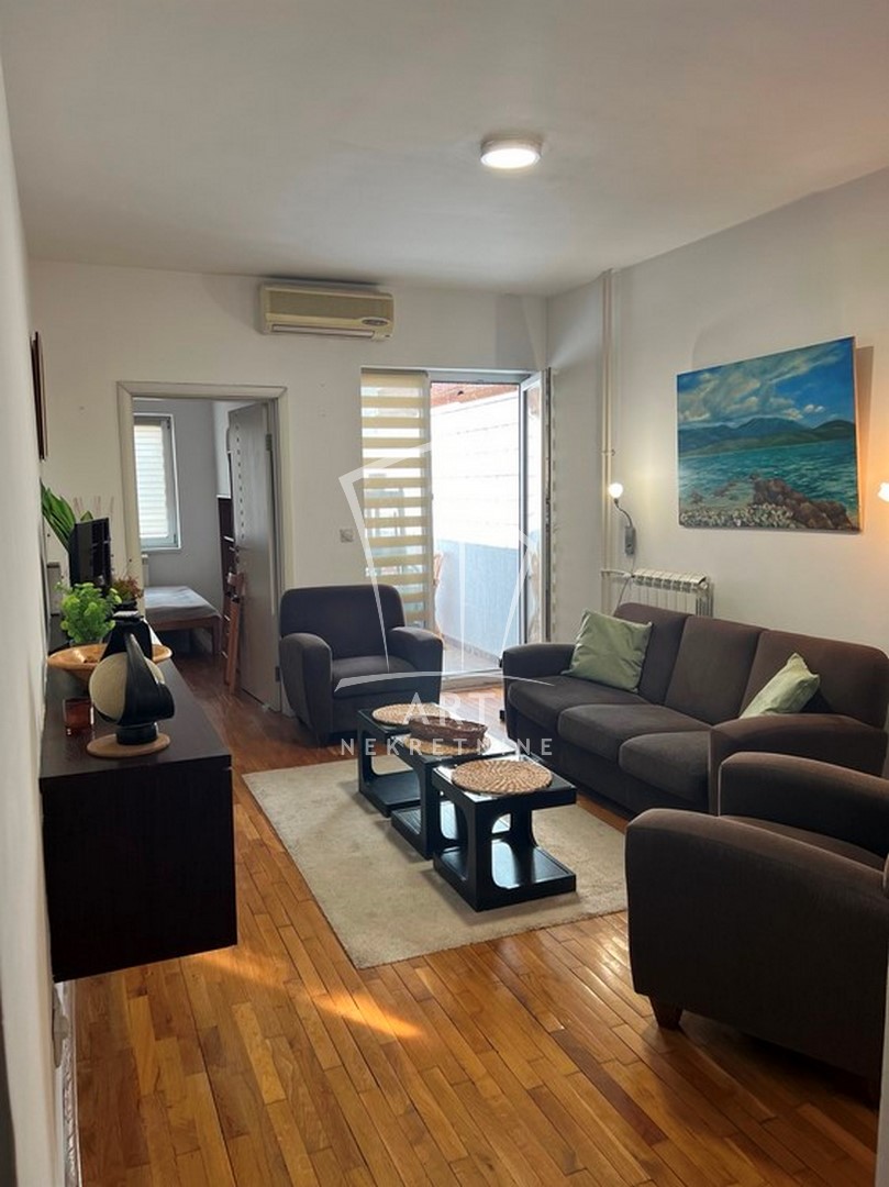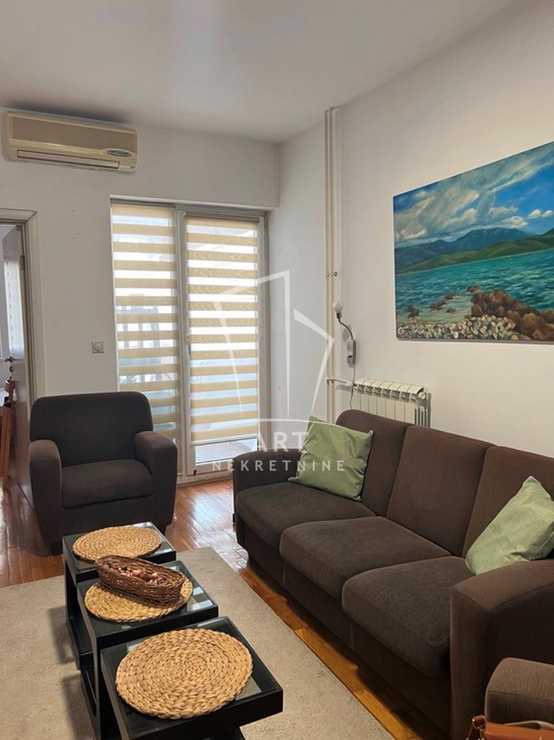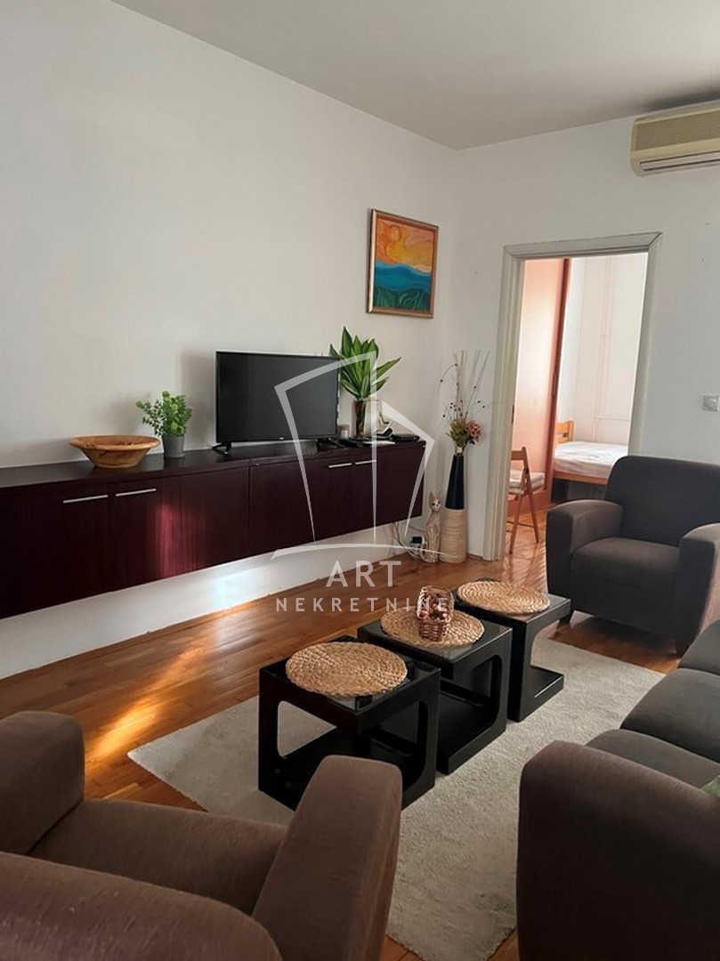 Sastoji se od predsoblja iz koga se ulazi u prostranu dnevnu sobu sa izlazom na terasu, odvojene kuhinje, kupatila sa tuš kabinom i velike spavaće sobe.