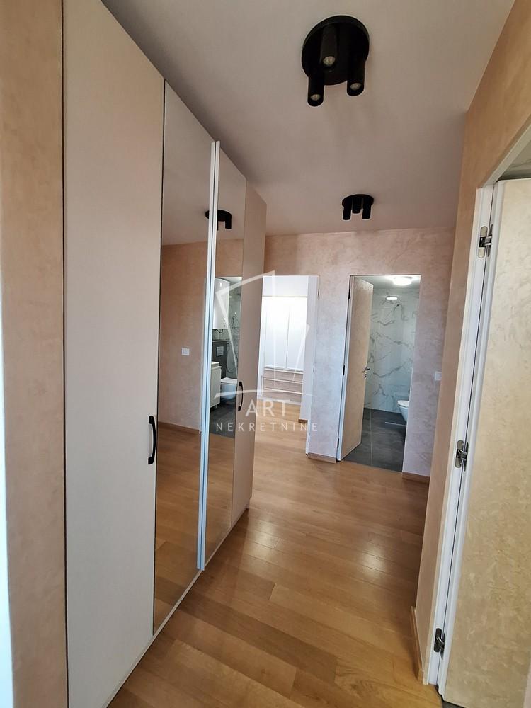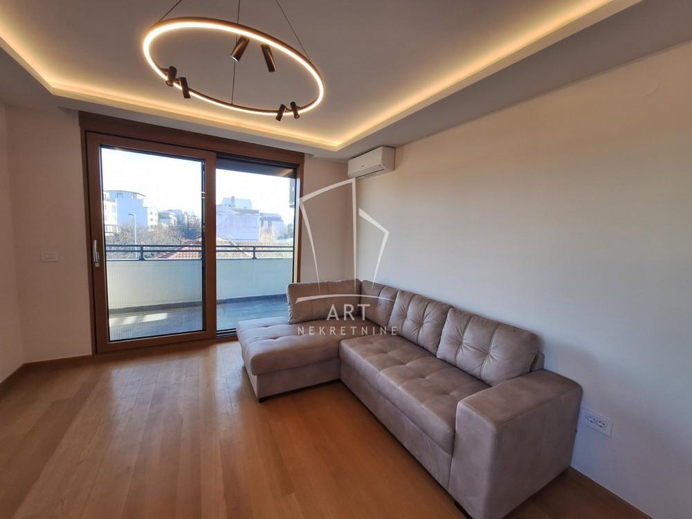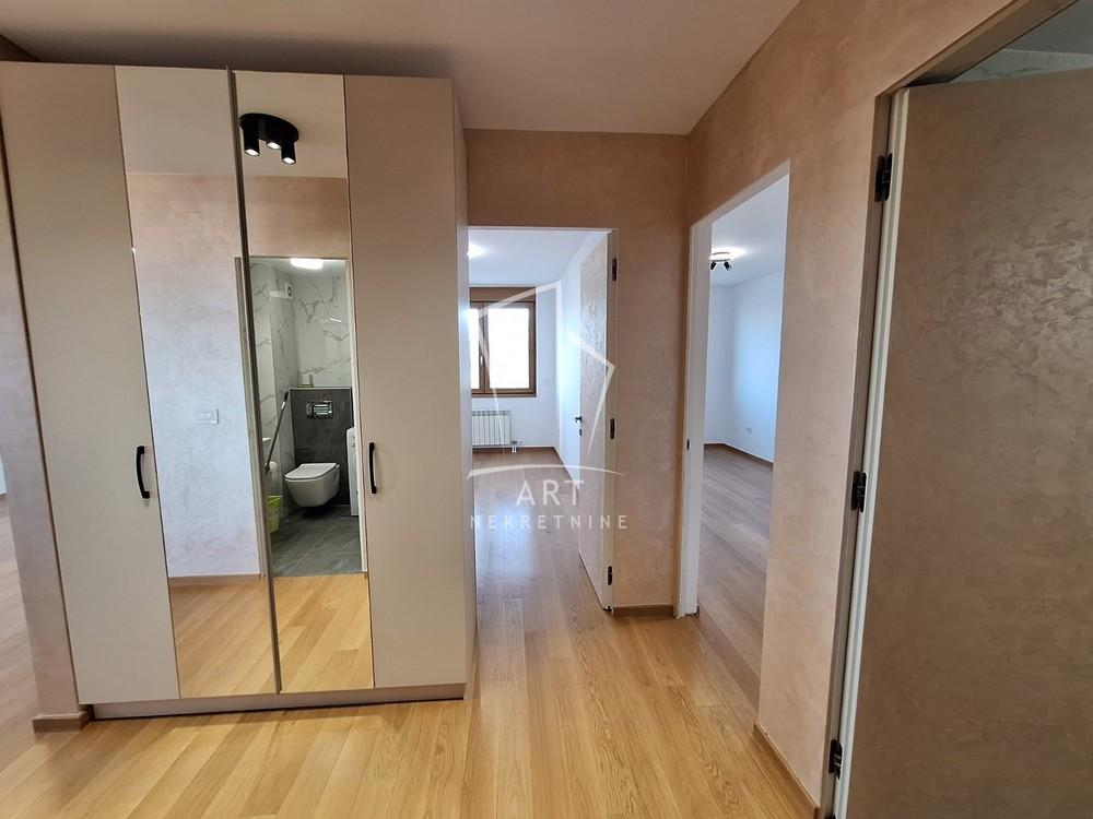 Prostor se sastoji iz dnevnog boravka sa trpezarijom i kuhinjom, spavaće sobe, dečije/radne sobe, kupatila i predivne terase.