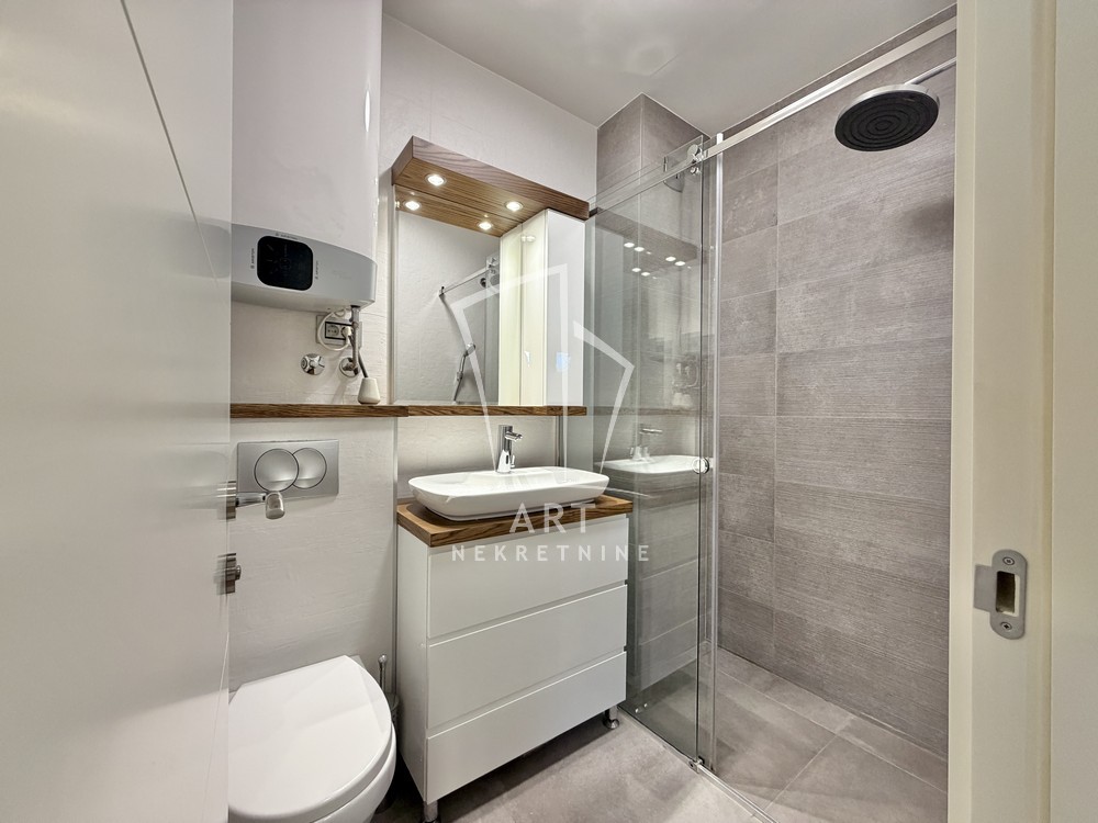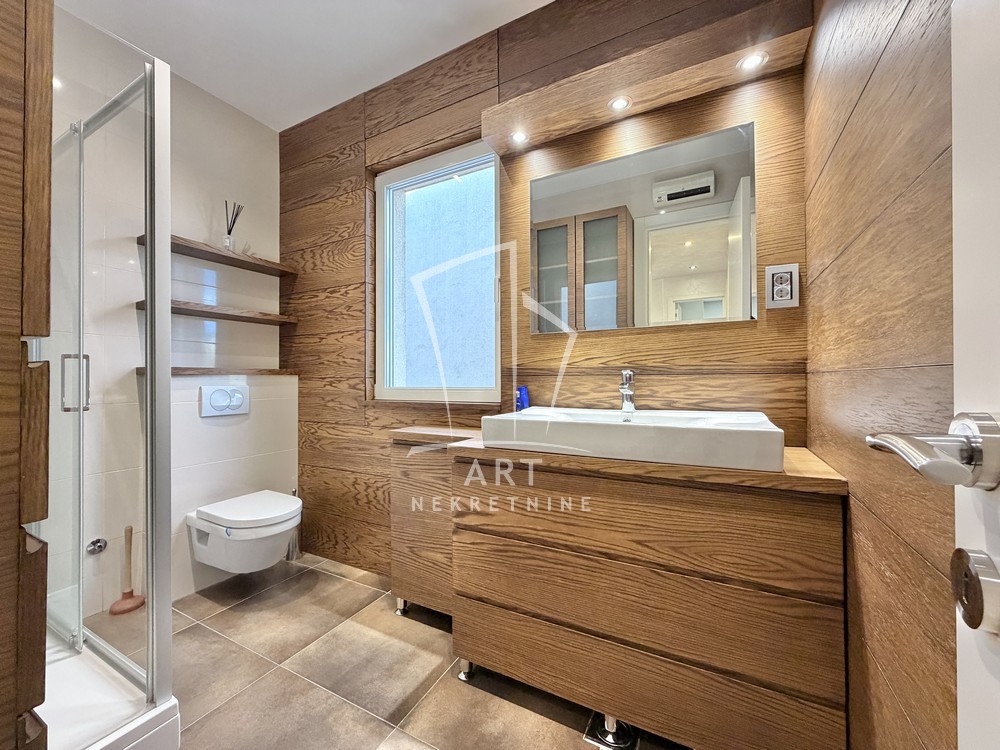 Terasa je natkrivena transparentnim panelima i opremljena sigurnosnom mrežom a u stan je ugrađen smart home sistem.