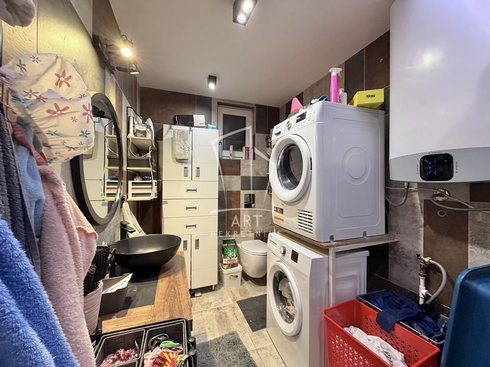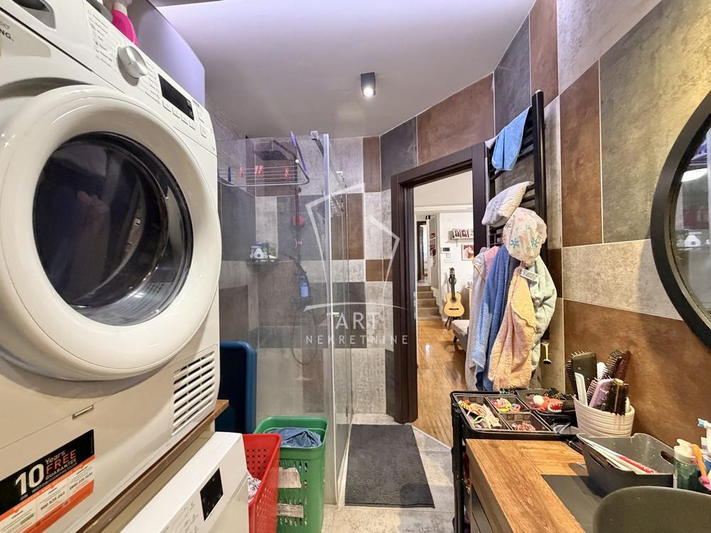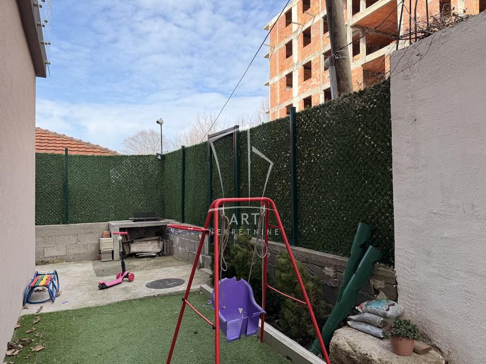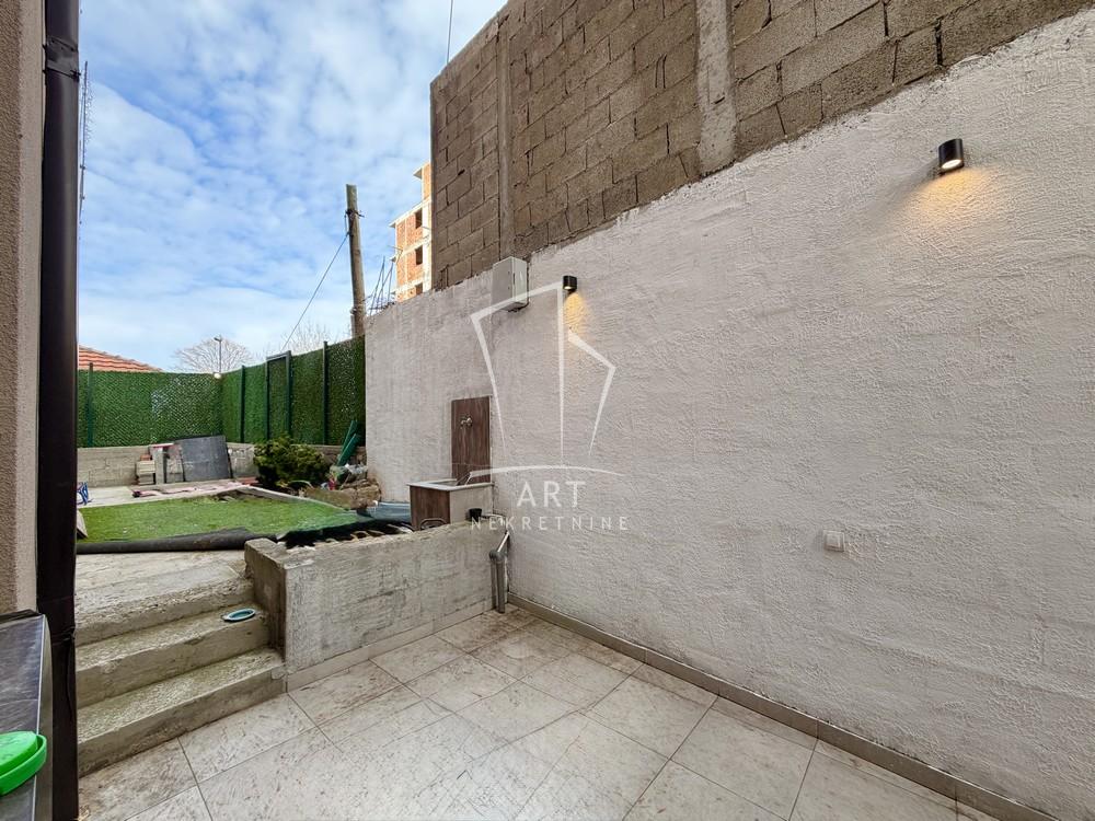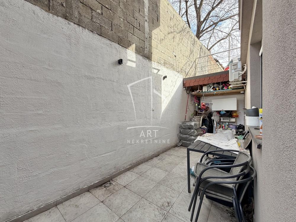 U ponudi je stan sa tri spavaće sobe, velikim dnevnim boravkom, i dvorištem površine oko 50m2, koje nije uknjiženo, ali na njega izlaz ima samo ovaj stan.
