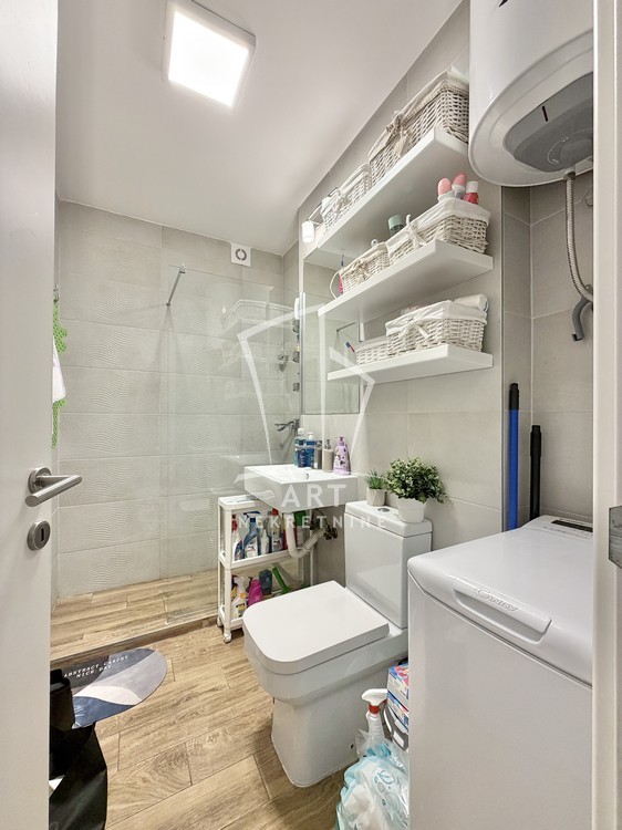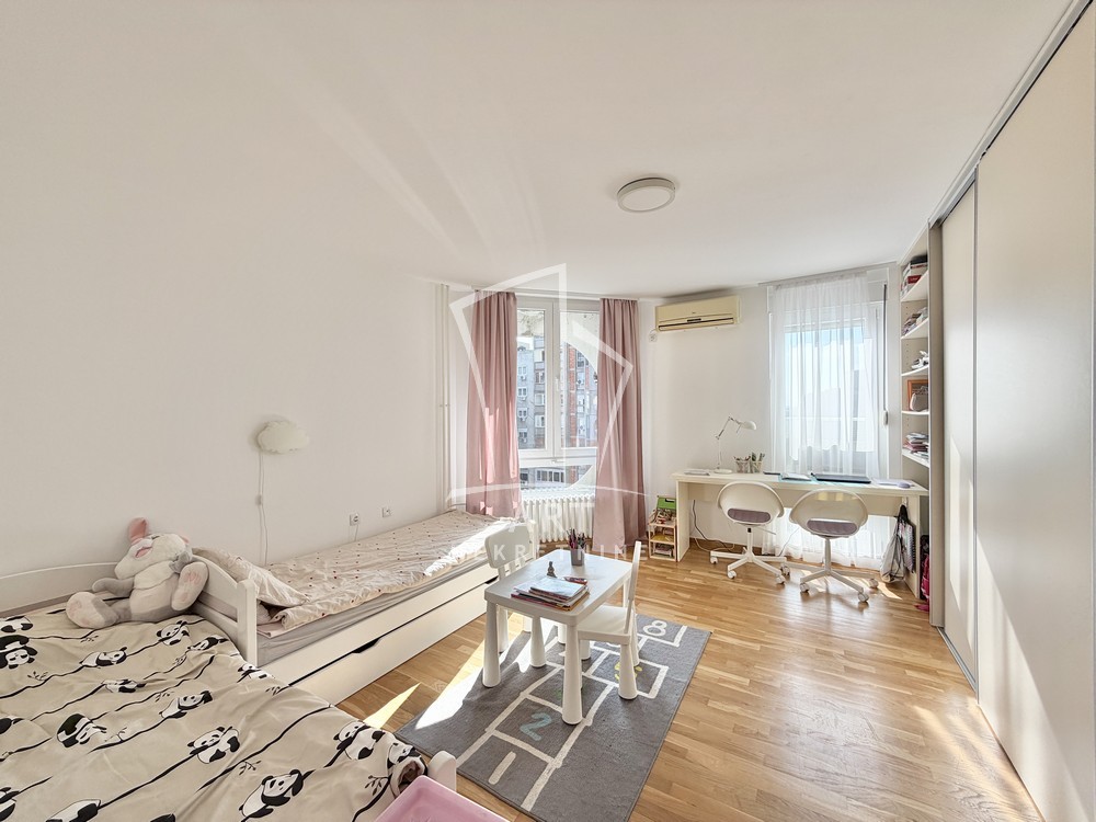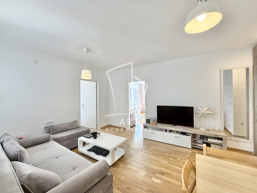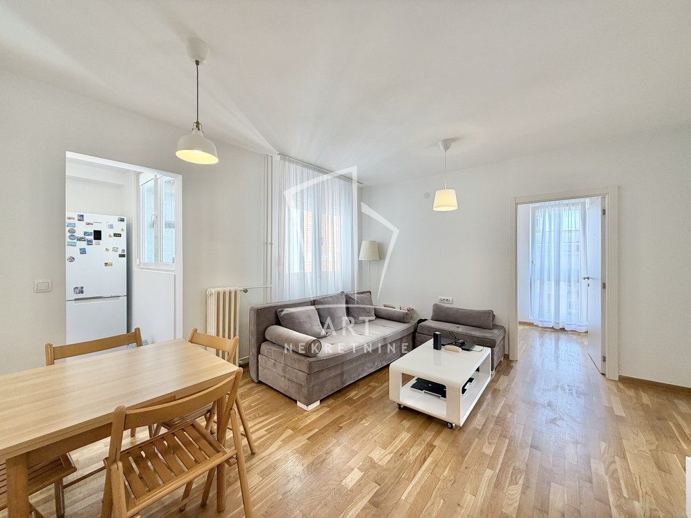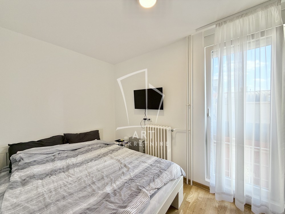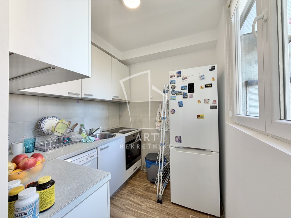 Stan je izuzetno vešto iz dvosobnog adaptiran u dvoiposoban i više nema zasebnu terasu jer ona sada čini sasatavni deo stana gde je smeštena kuhinja.