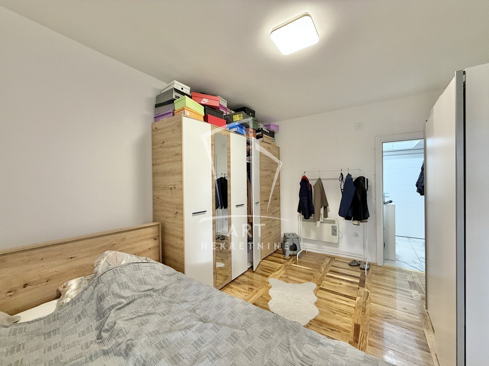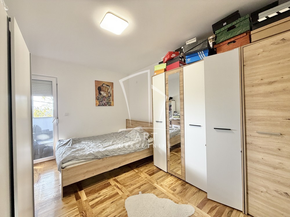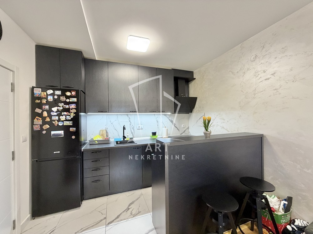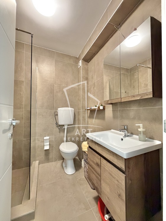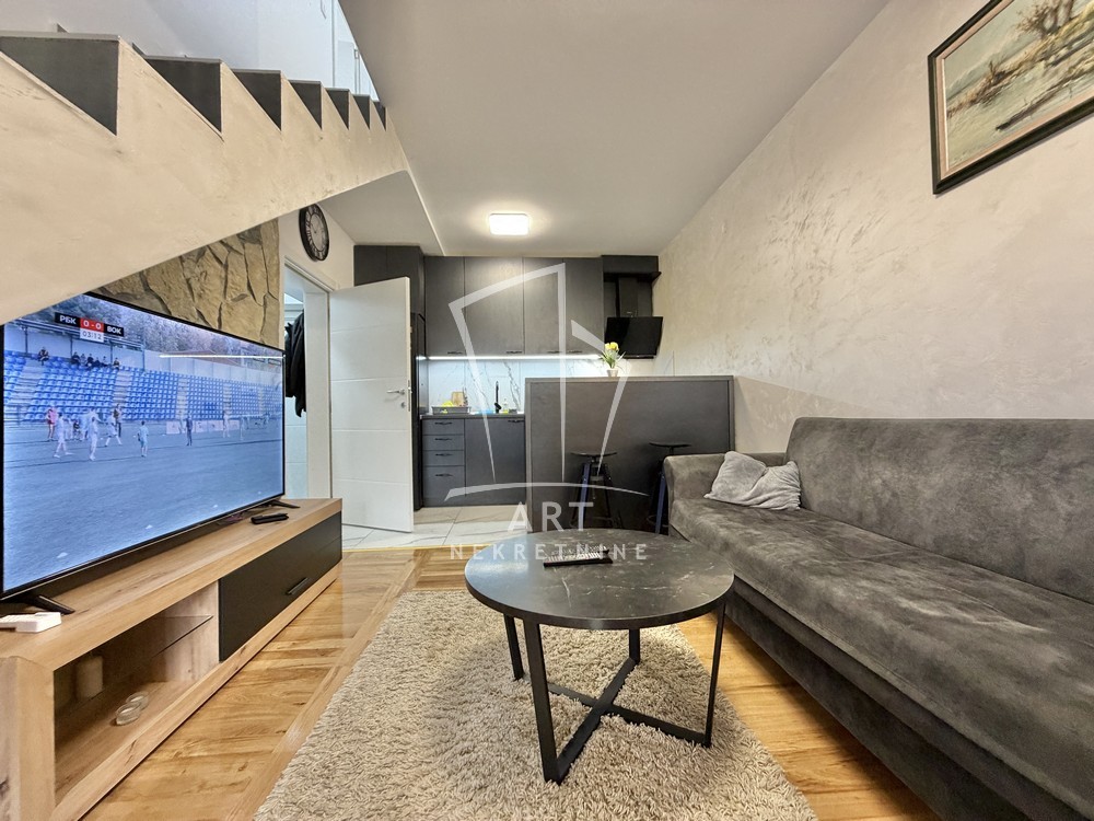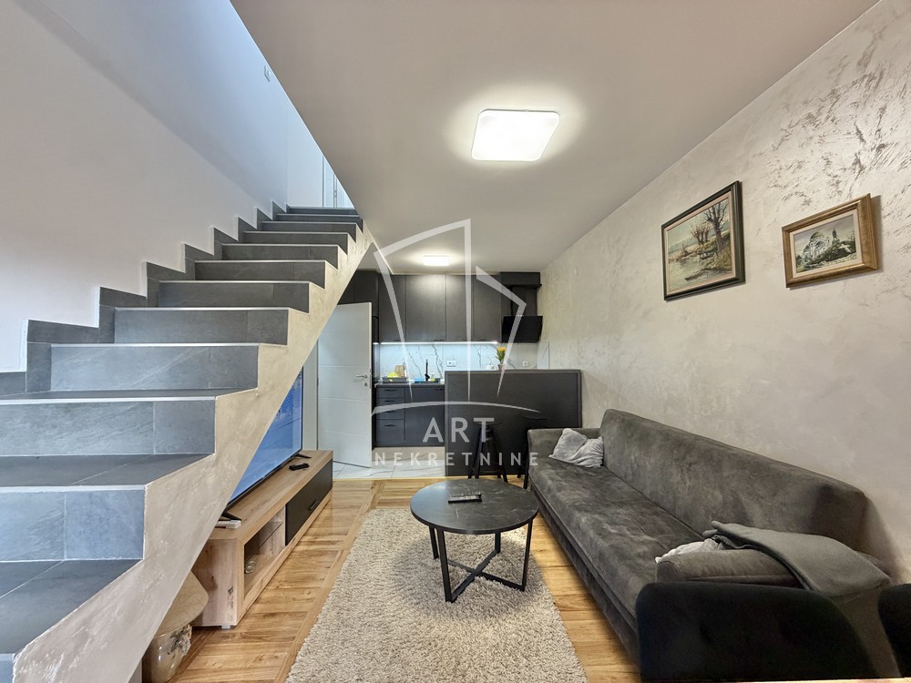 Stan se sastoji od dnevne sobe sa kuhinjom i trpezarijom, kupatila, spavaće sobe i terase koja se pruža širinom stana, tako da izlaz na terasu imaju obe sobe u prizemlju.