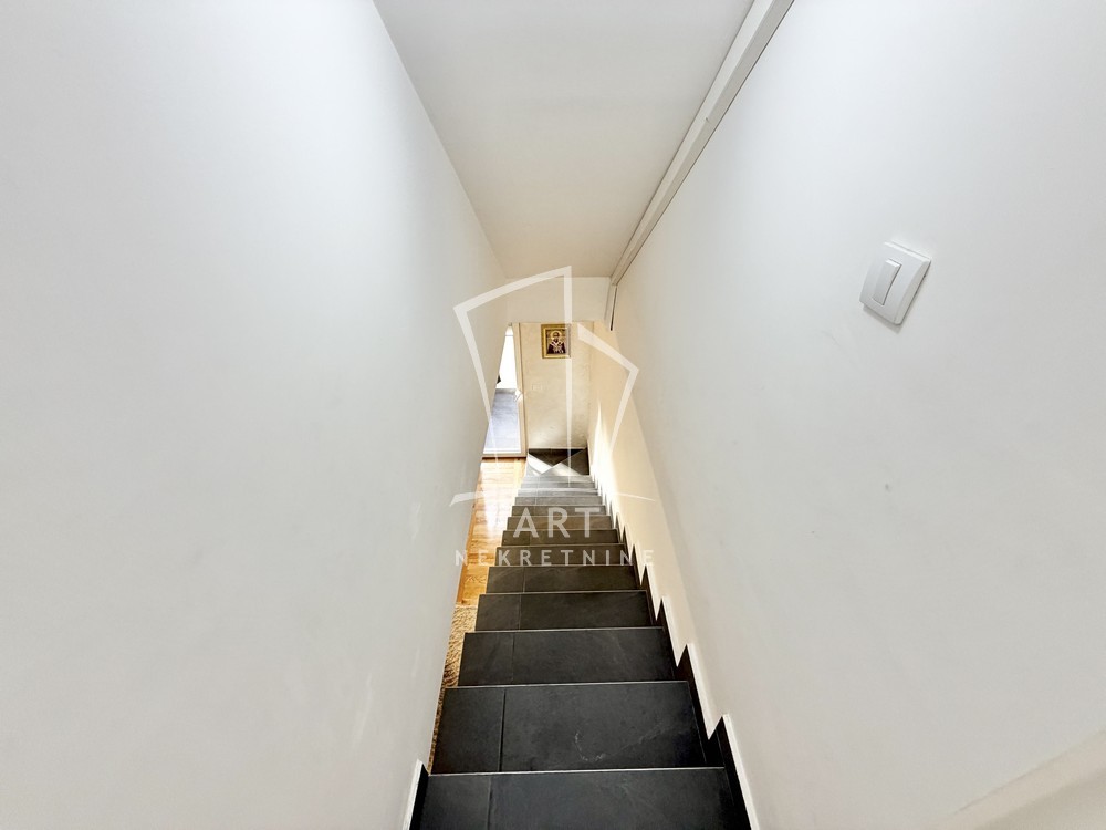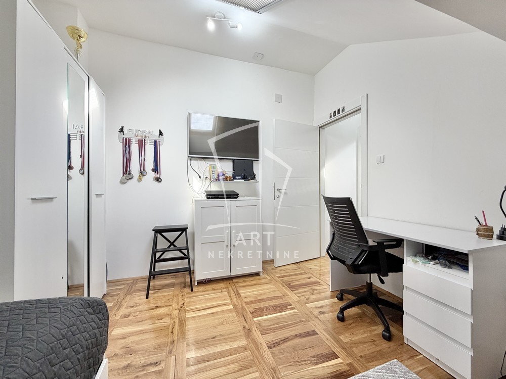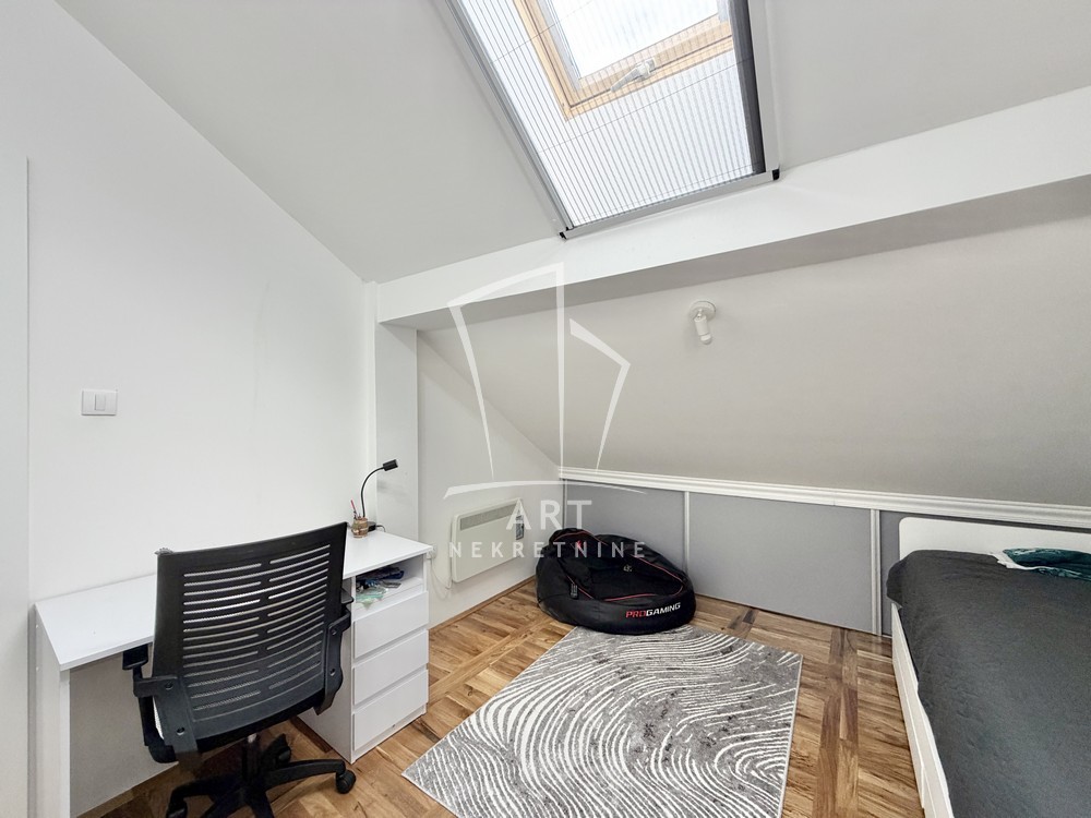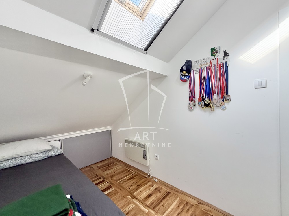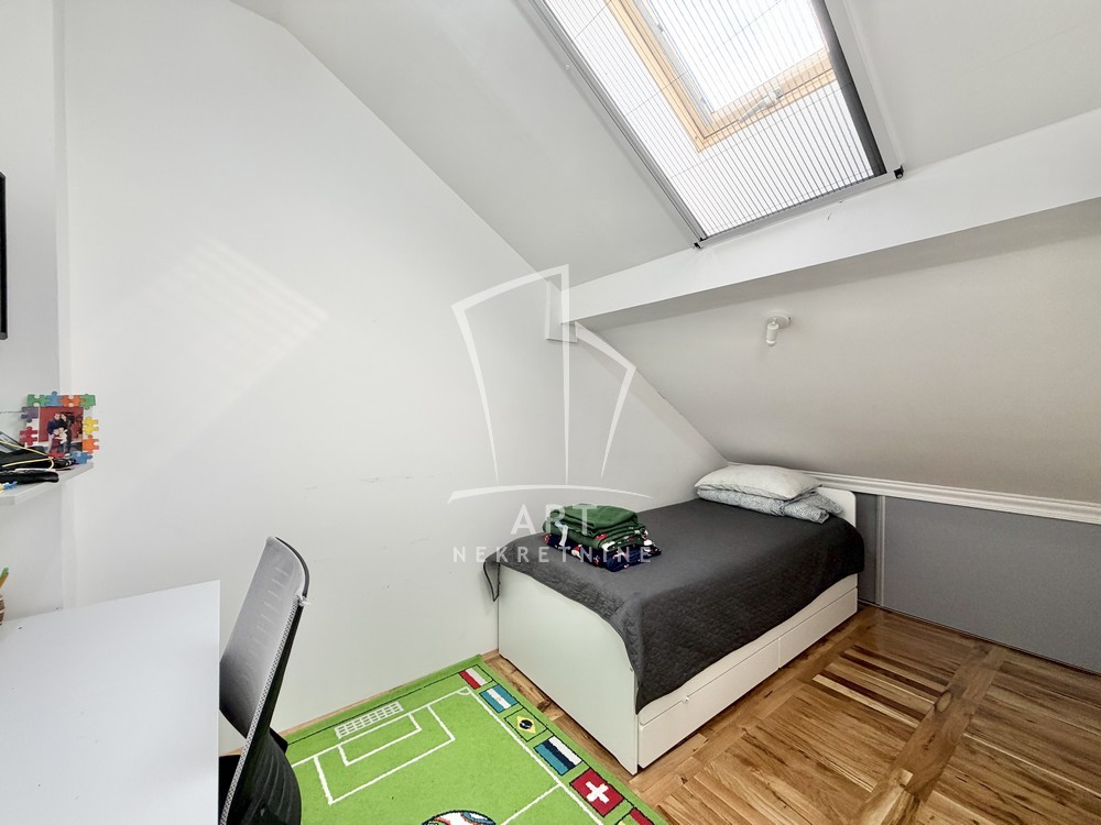 Na gornjem nivou nalaze se dve dečije sobe, sa krovnim prozorima i komarnicima.