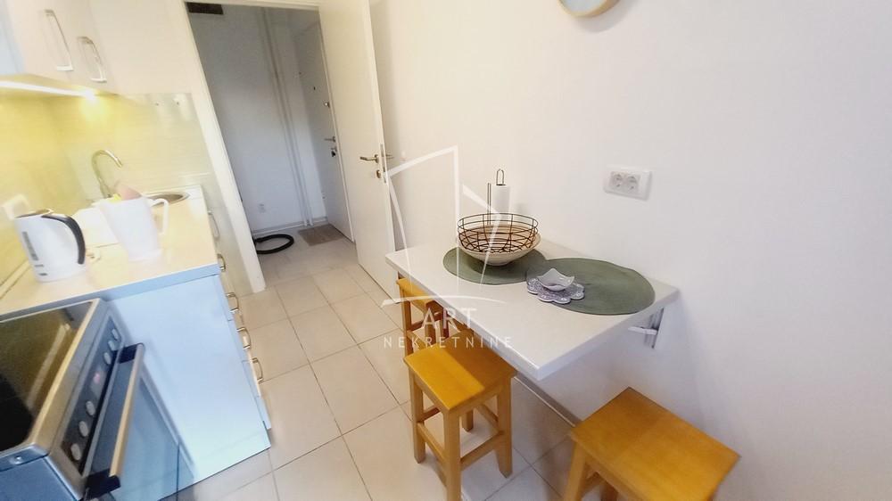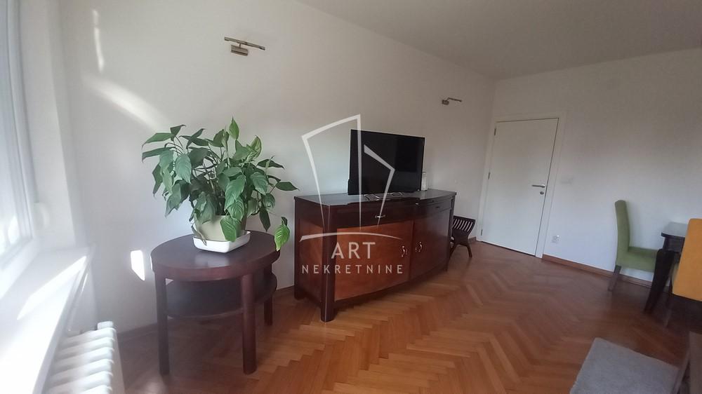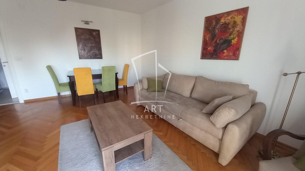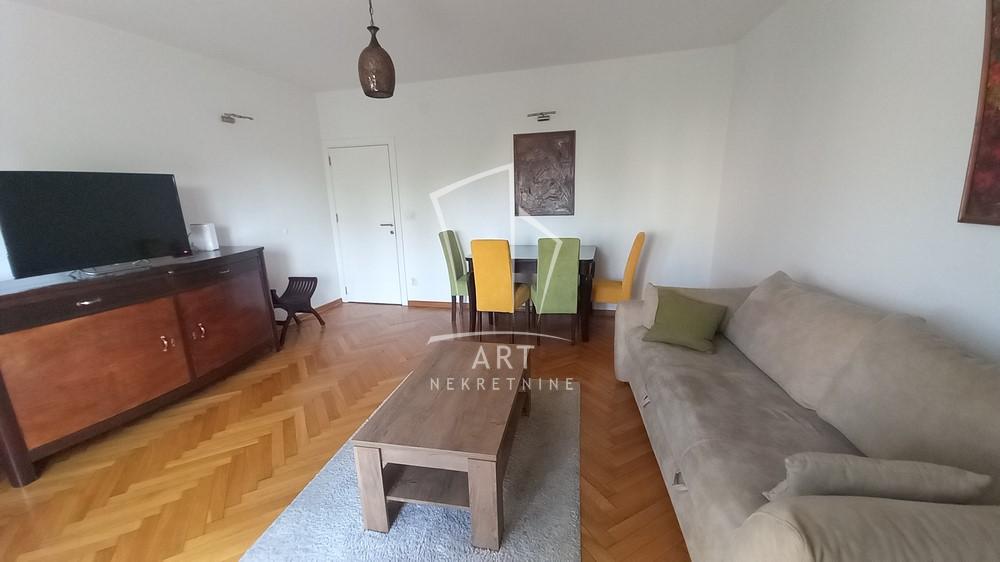 Dvostrano orijentisan, ima dve terase, odličan raspored, izdvojenu kuhinju sa trpezarijom, sve nove stvari, osim par atraktivnih antikviteta.
