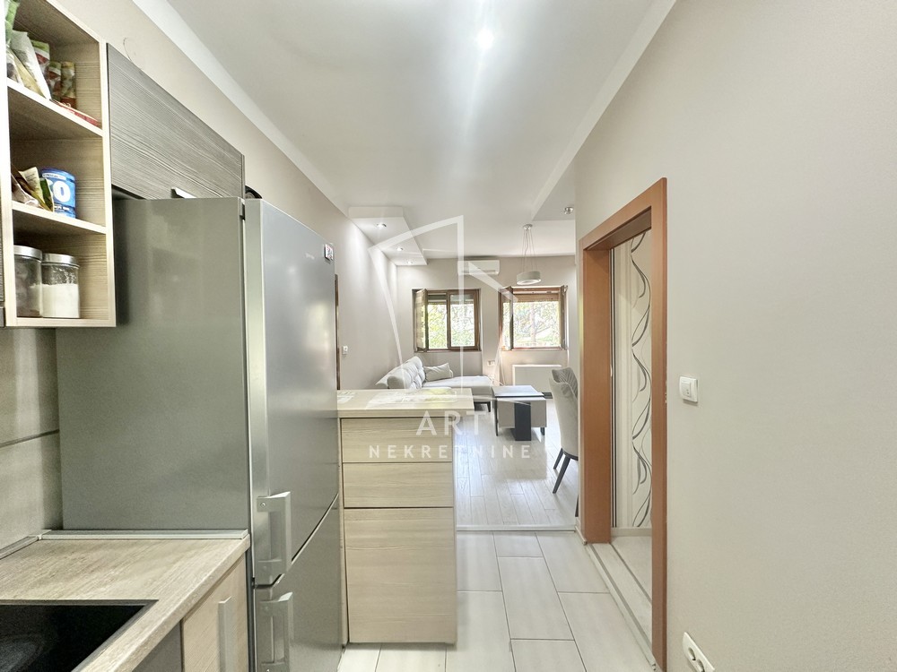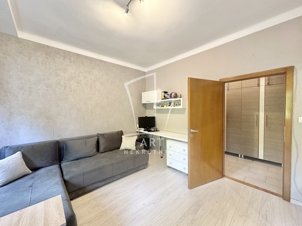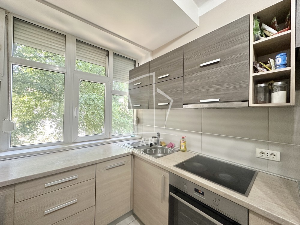 Stan je dvostrano orijentisan istok-zapad, pogled na park iz svih prostorija. Ugradna kuhinja i ormani ostaju budućem kupcu.