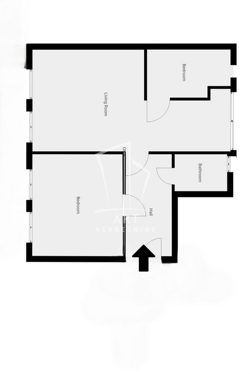 Sastoji se od komotnog ulaznog hodnika, velike spavaće sobe, kupatila, kuhinje sa trpezarojom i dnevnom sobom, iz koje se ide u manju spavaću sobu.
