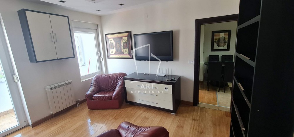 Stan je sunčan i svetao, kompletno opremljen. Prostorije : veća i manja soba, kuhinja, kupatilo i terasa