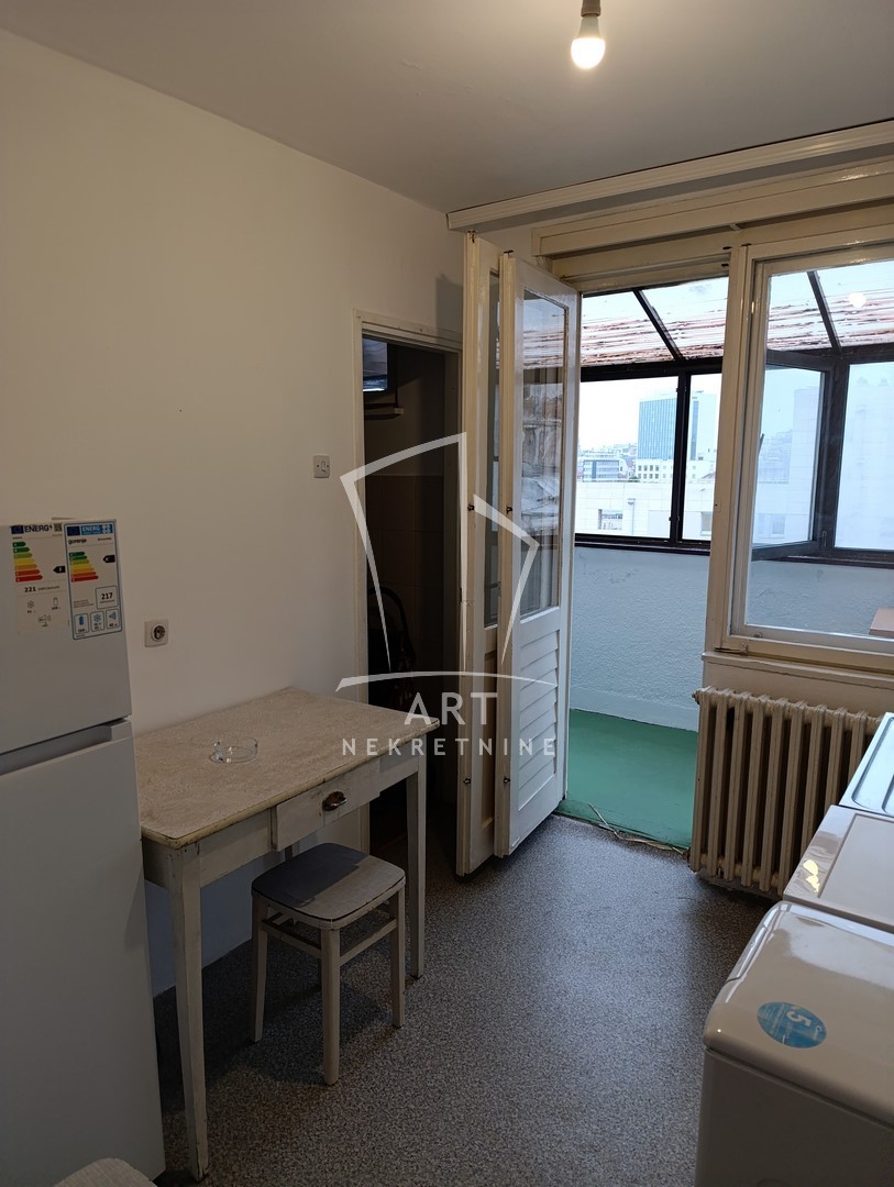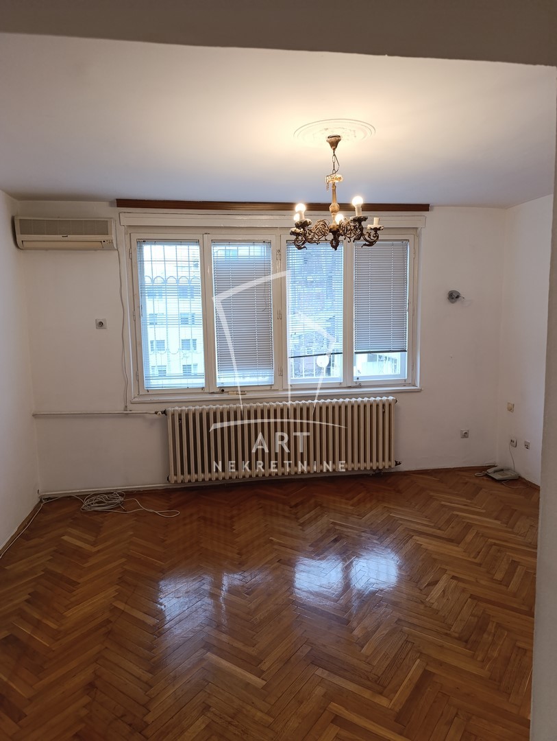Svetao, prostran dvosoban stan na odličnoj lokaciji, u samom centru pogodan kao poslovni prostor- kancelarije, ordinacija, kao i za stanovanje.