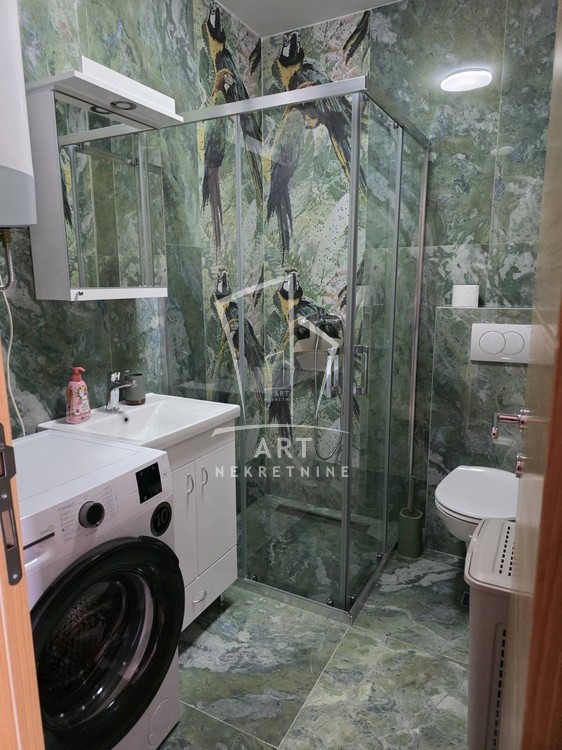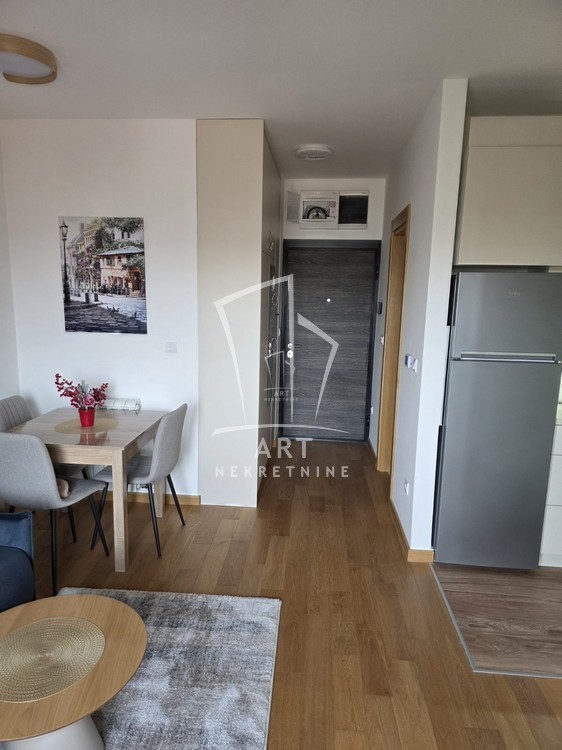 Stan je pažljivo dizajniran, kompletno opremljen kvalitetnim novim nameštajem i uređajima, ugradnim plakarima i spreman za useljenje.