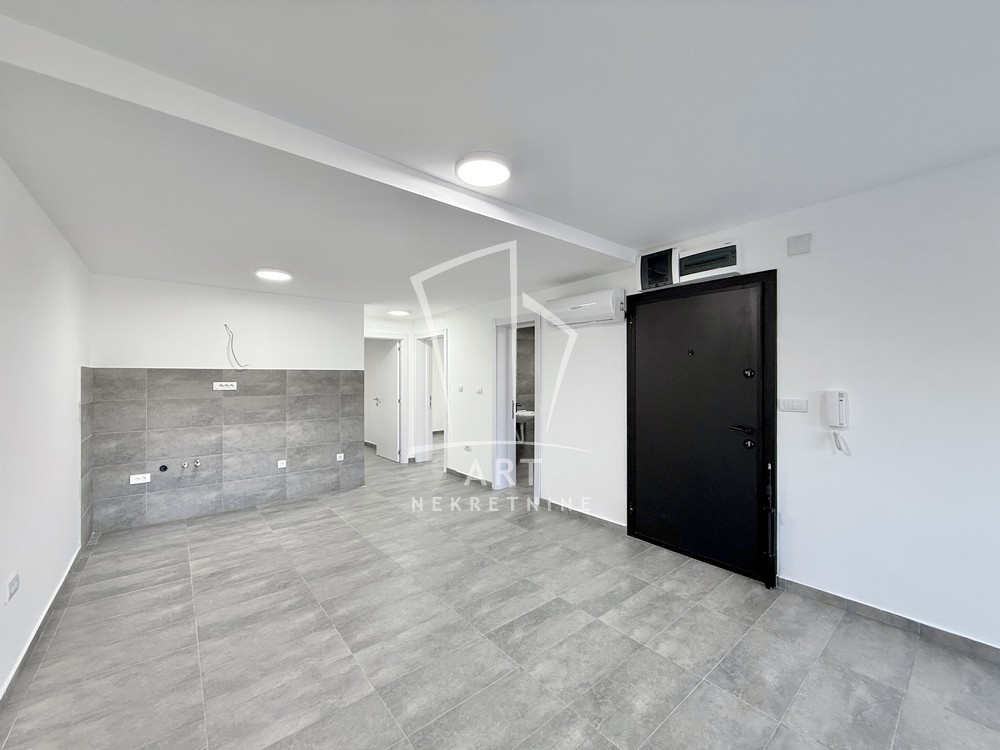 Struktura: dnevni boravak sa kuhinjom i trpezarijom open plan, dve spavaće sobe, kupatilo i velika terasa od 9m2.