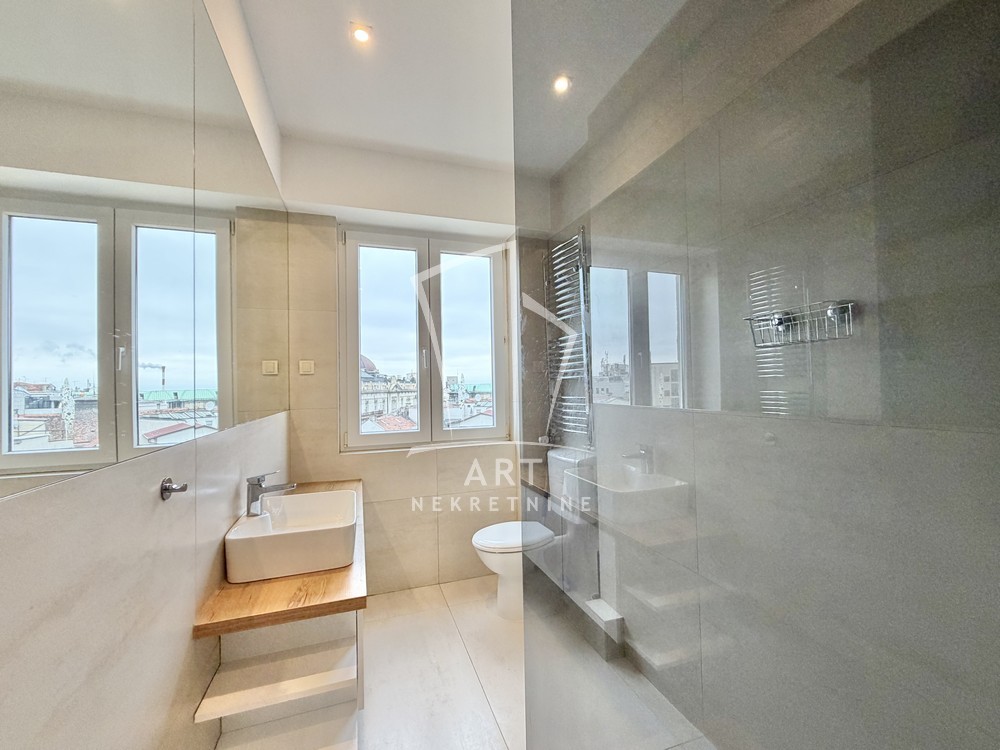 Namešten svetao stan u održavanoj zgradi u srcu pešačke zone.