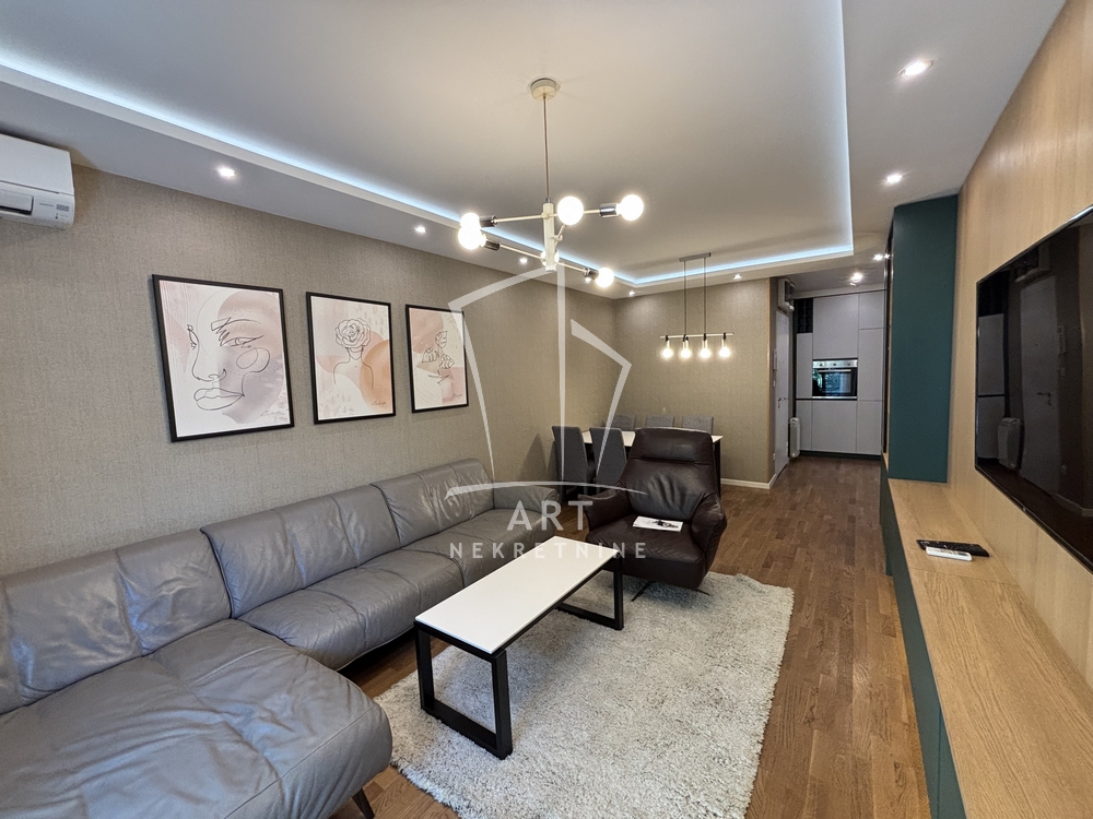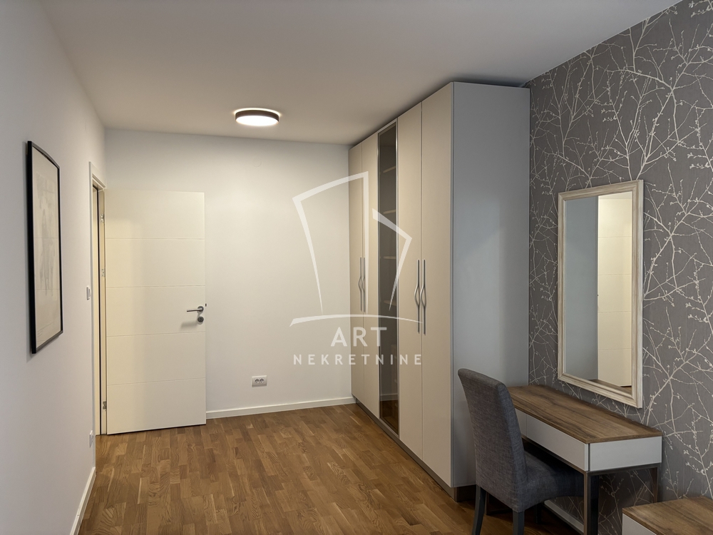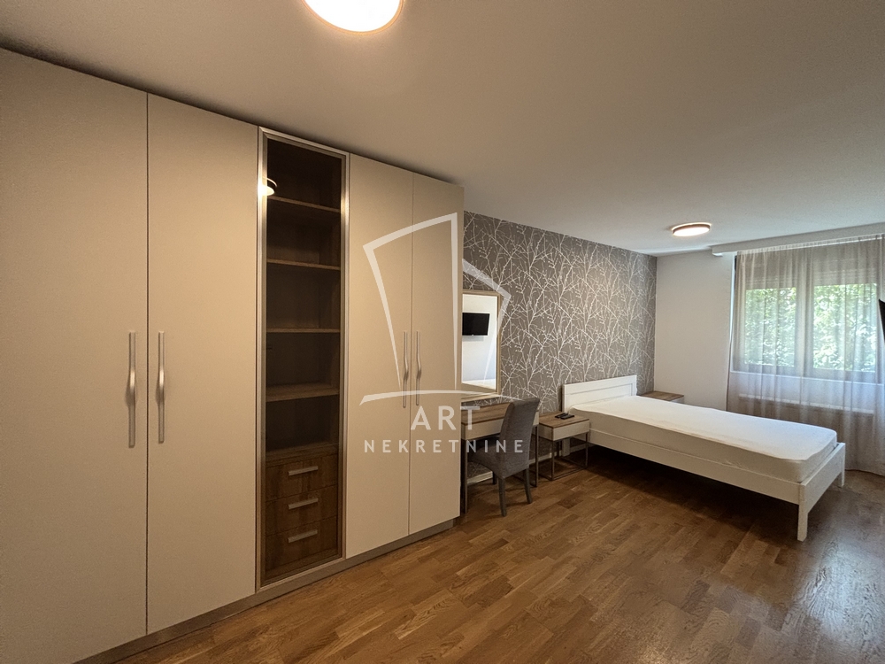 Nalazi se na prvom spratu zgrade sa liftom. Enterijer je urađen od iznadstandardnih materijala, a grejanje je etažno na gas.