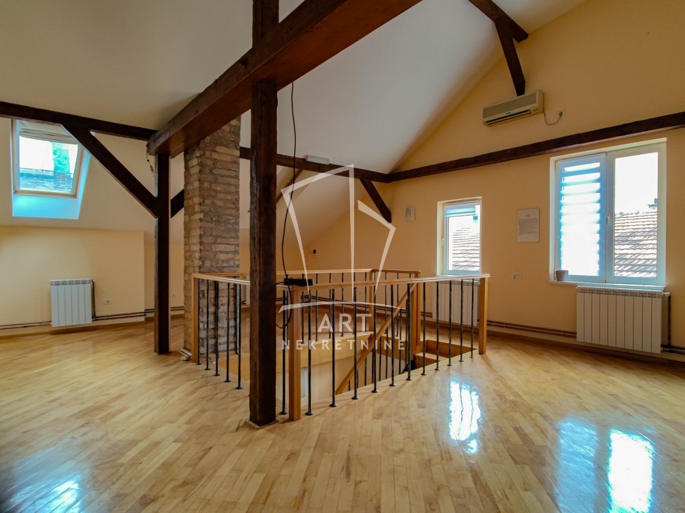 Stan je renoviran, sastoji se od osnove od 180m2 klasične salonske strukture i drugog nivoa od 59m2 otvorenog tipa, Nekretnina pogodna za sve namene, deljiva na dve jedinice.