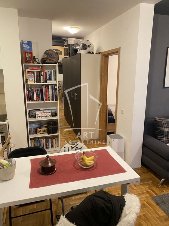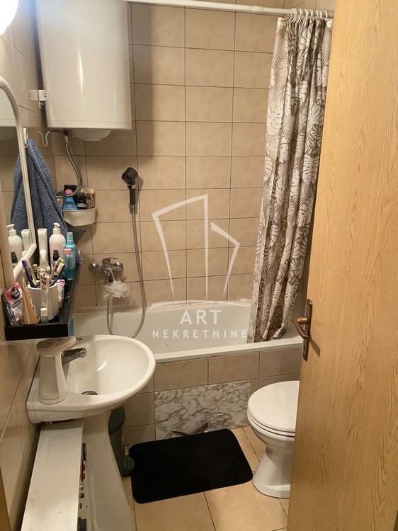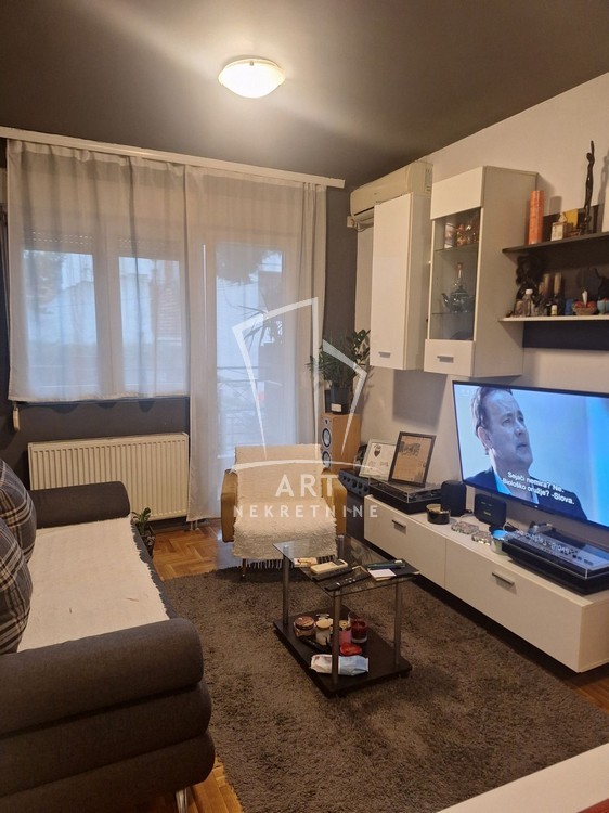 Lepo organizovan i održavan stan, sa funkcionalnim rasporedom - dnevna i spavaća soba, delimično odvojena kuhinja i toalet sa kadom i mestom za veš mašinu.