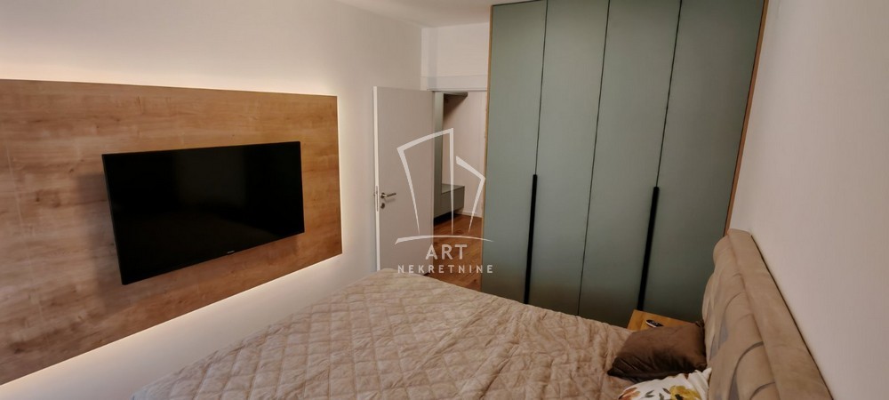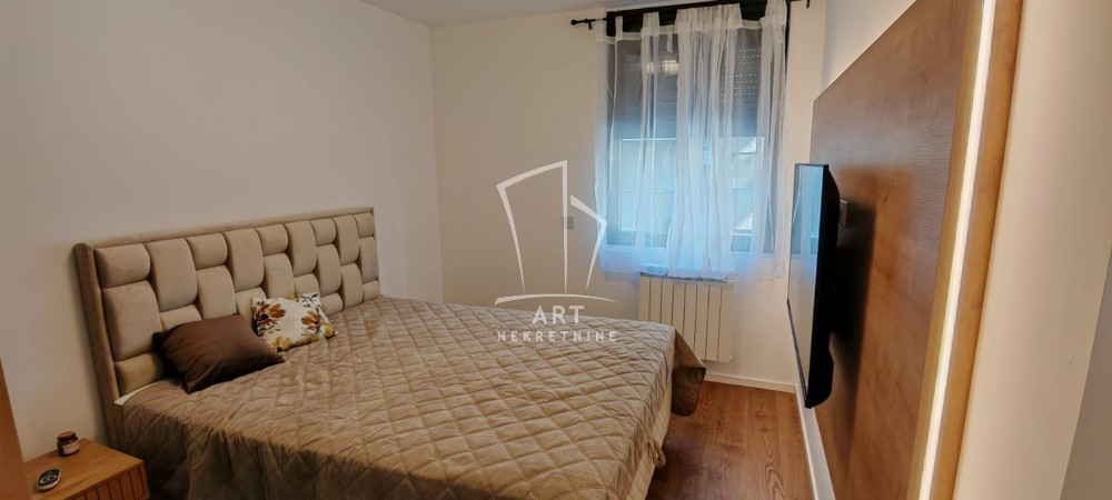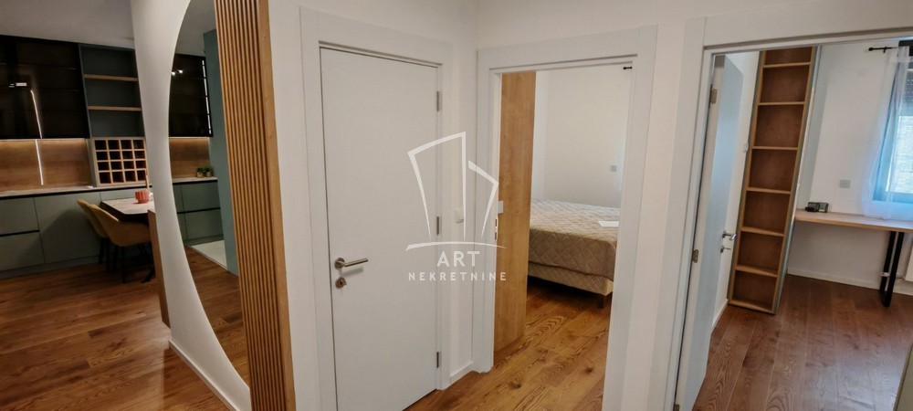 Struktura stana: prostran dnevni boravak sa trpezarijom, potpuno opremljena moderna kuhinja, dve udobne spavaće sobe, luksuzno kupatilo sa savremenom sanitarijom, ostava, terasa.