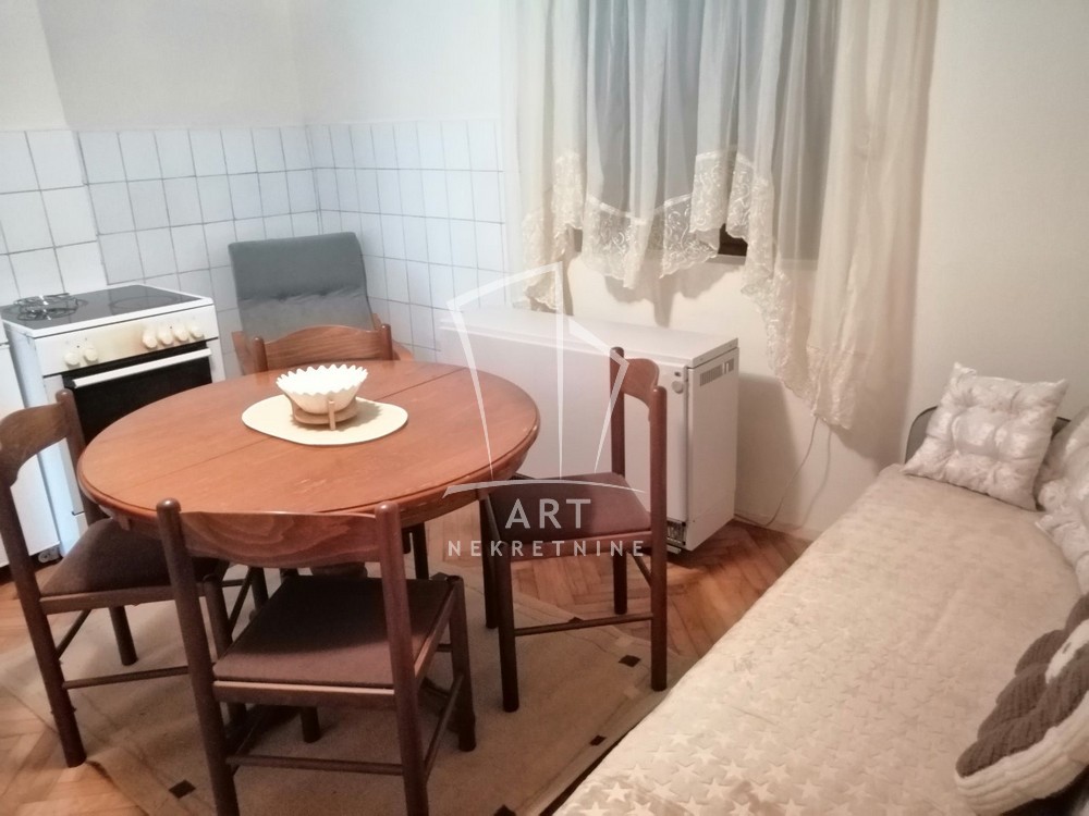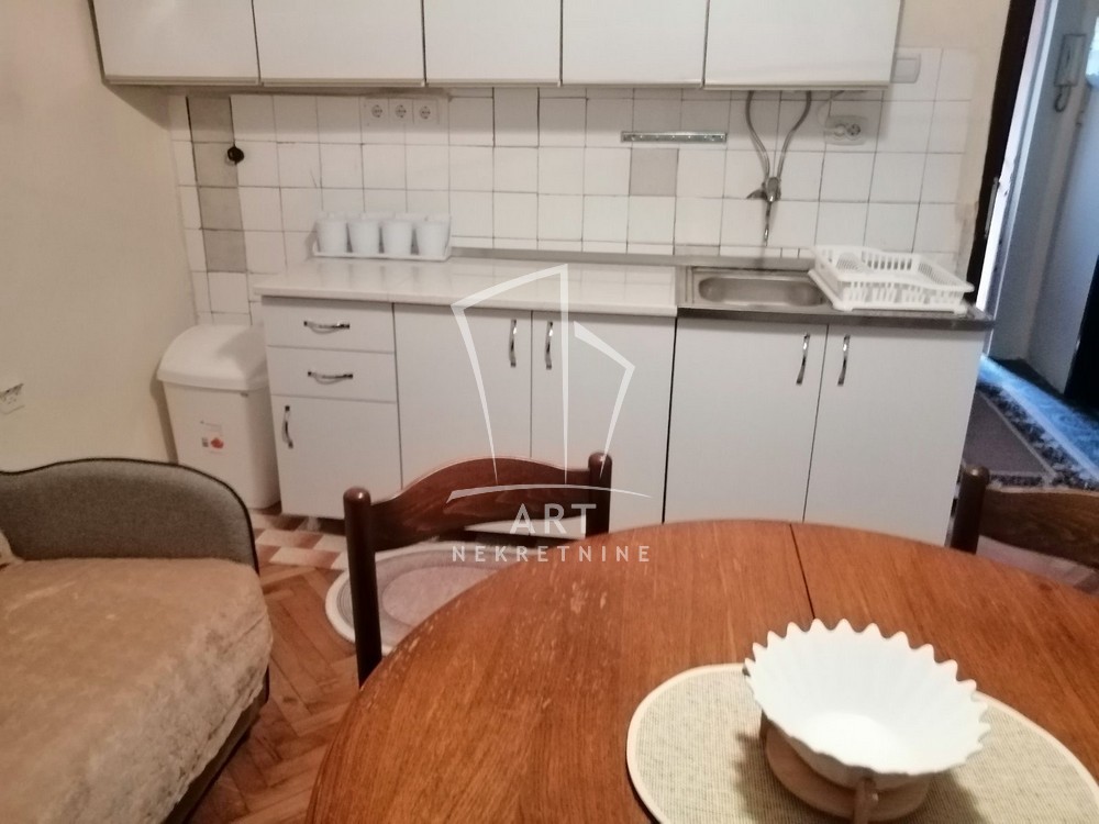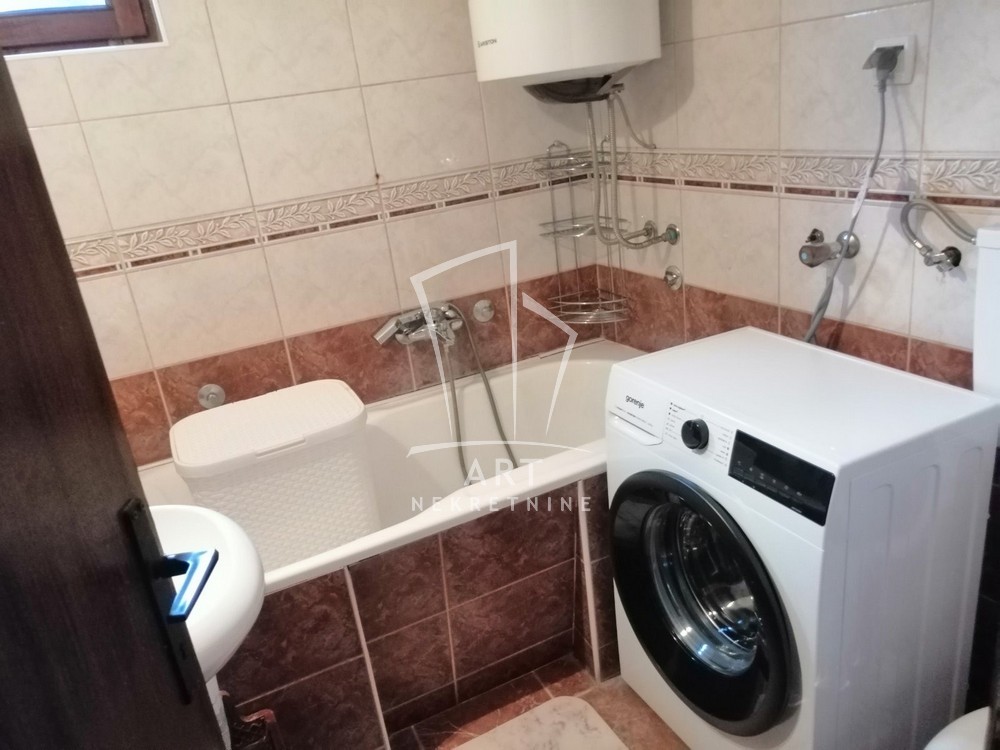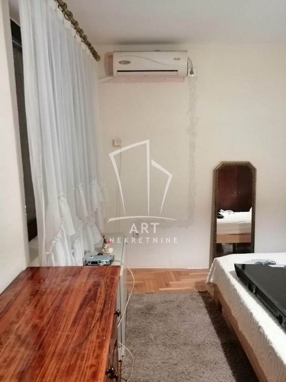 Izdaje se stan u kući, komplet opremljen, na duži vremenski period. Sastoji se iz kuhinje sa terpezarijom i dve sobe, kupatilo, terasa, dva parking mesta, interfon, grejanje je na ta pec. Kuca je udaljena od centra jednu autobusku stanicu, i nalazi se u mirnoj ulici. Postoji mogućnost iznajmljivanja drugog dela kuće .
