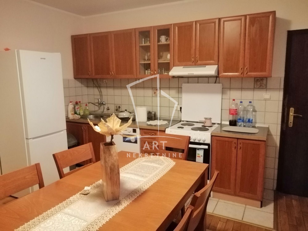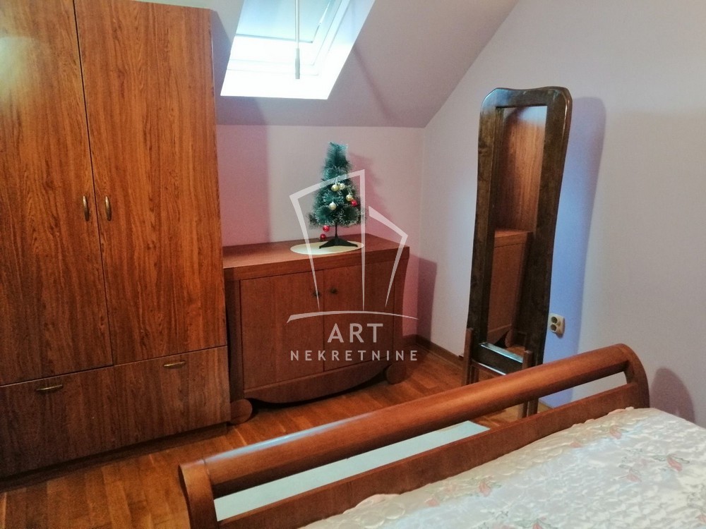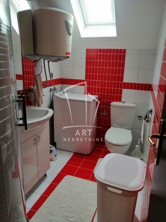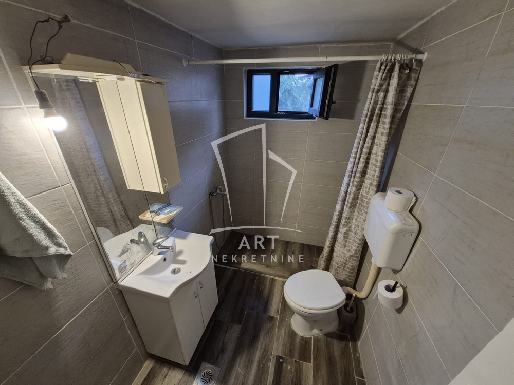 Izdaje se duplex, komplet, opremljen, na duži vremenski period. Na spratu se nalazi kupatilo i spavaća soba, a u prizemlju prostrana kuhinja sa terpezarijom i velikom dnevnom sobom. Grejanje je na ta peć i dve inverter klime. Ima dva parking mesta, interfon i izlaz na dvorište. Kuća je udaljena od centra jednu autobusku stanicu. Postoji mogućnost iznajmljivanja drugog dela kuće . Stan je u mirnoj ulici .