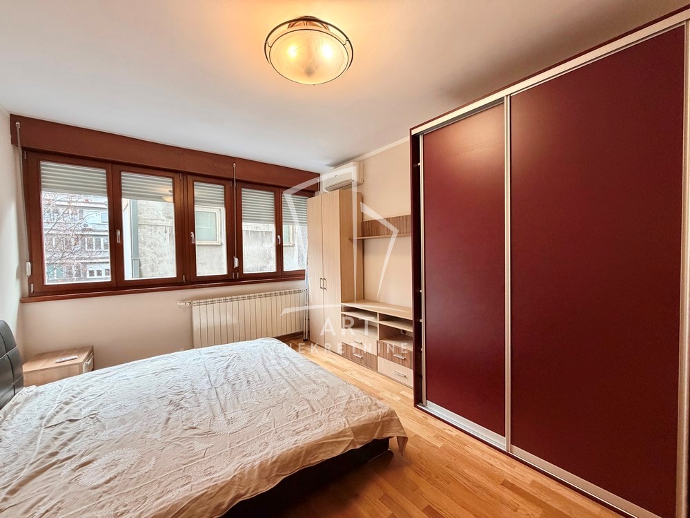 Izdaje se dvosoban, potpuno renoviran i moderno namešten stan od 61m2, smešten u mirnoj ulici nadomak Tašmajdanskog parka, jedne od najlepših i najzelenijih lokacija u centru Beograda.