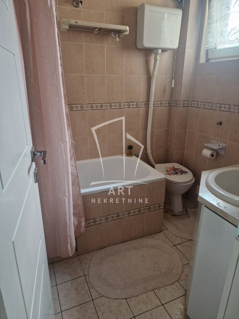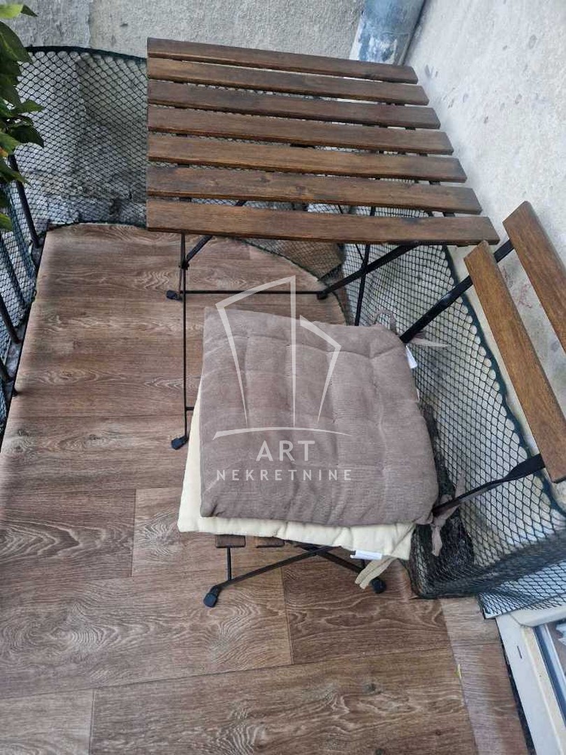 Stan je renoviran i kompletno opremljen. Poseduje: prostrani ulazni hodnik, svetao dnevni boravak, funkcionalnu kuhinju sa trpezarijom, komfornu spavaću sobu, kupatilo, 2 terase i pet ugradnih plakara. Stan je na 4. spratu od ukupno 5 spratova. Grejanje: norveški radijatori.
