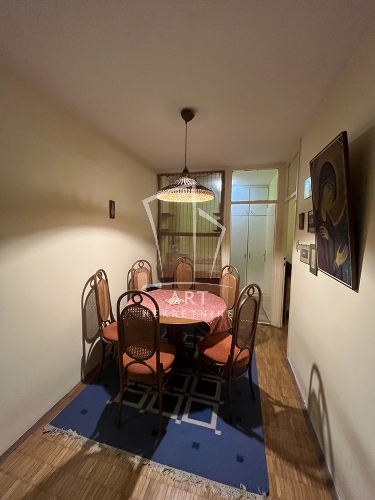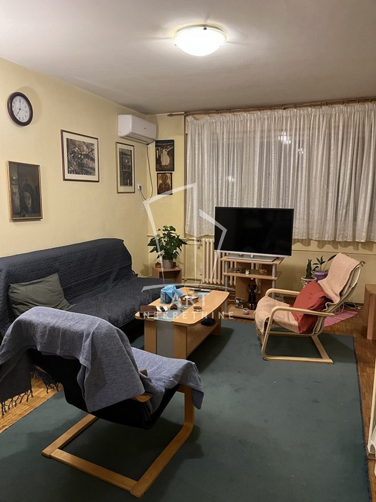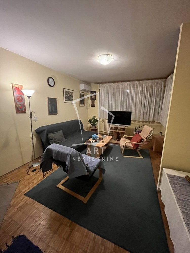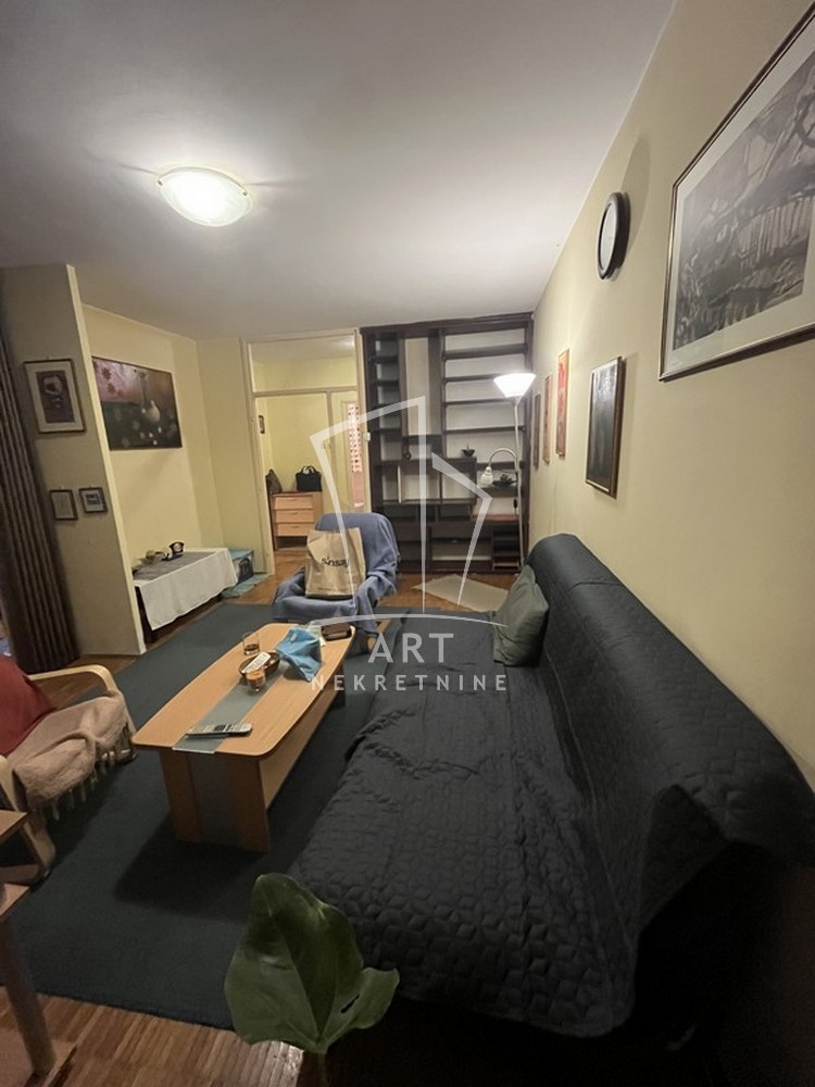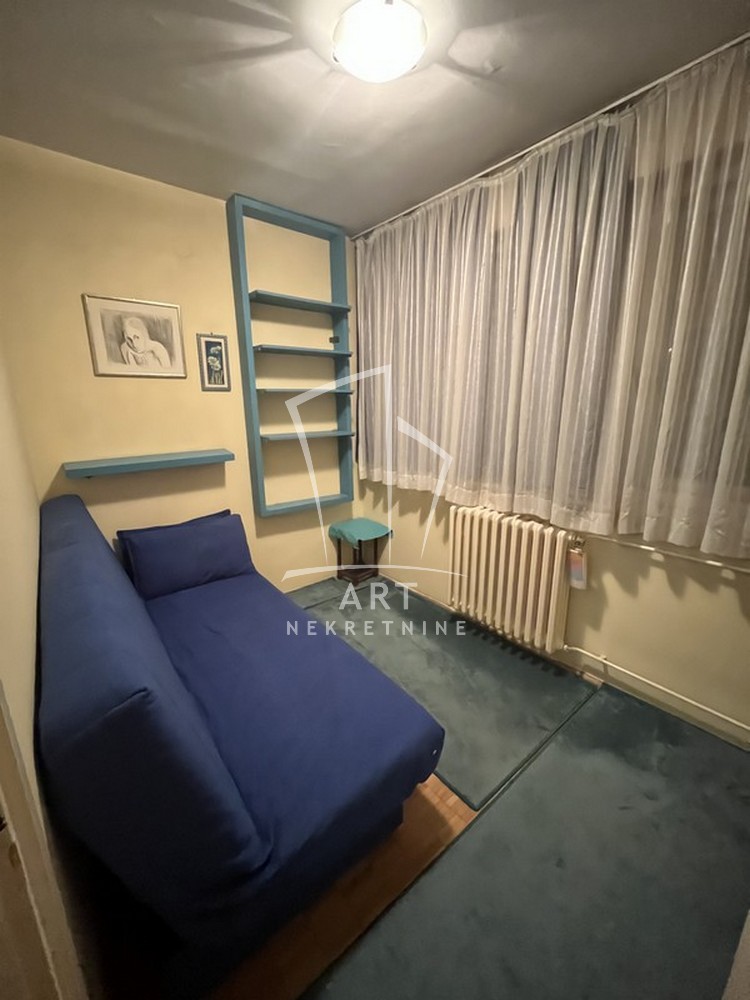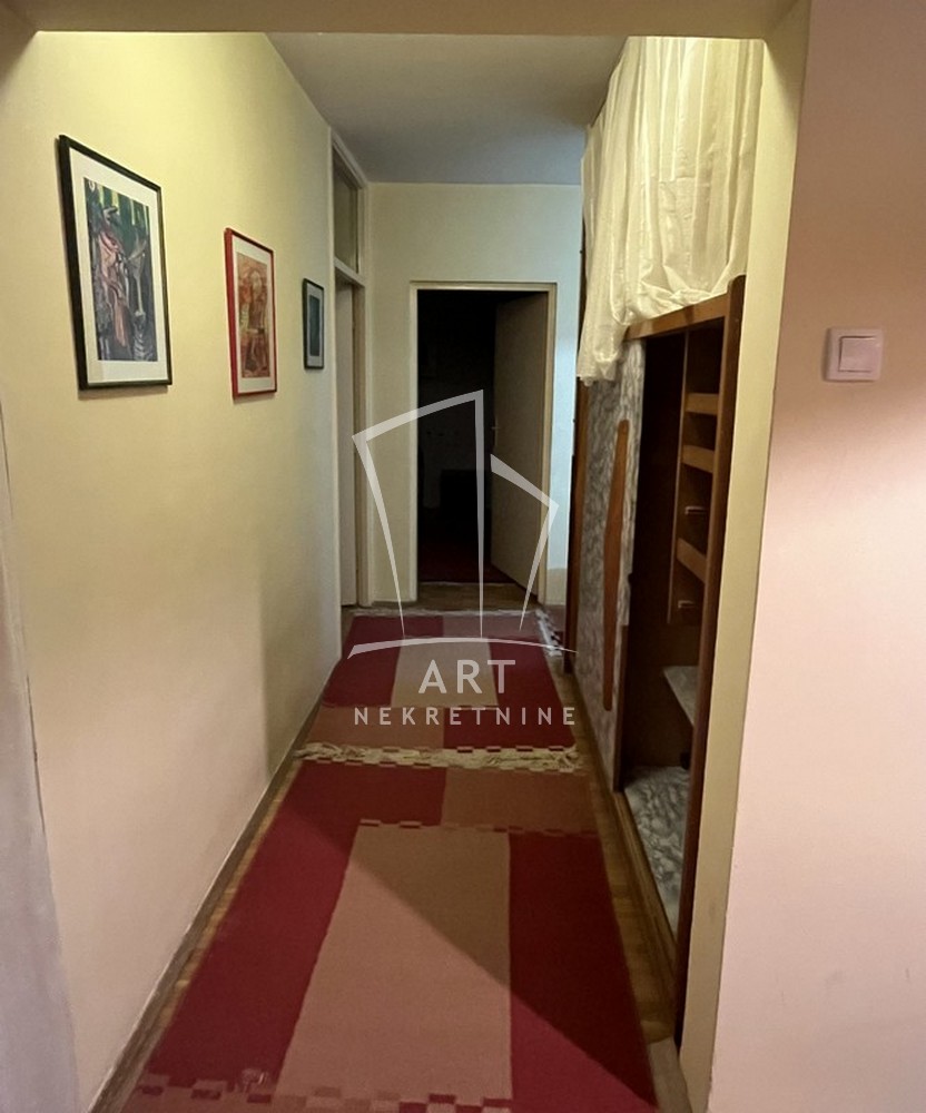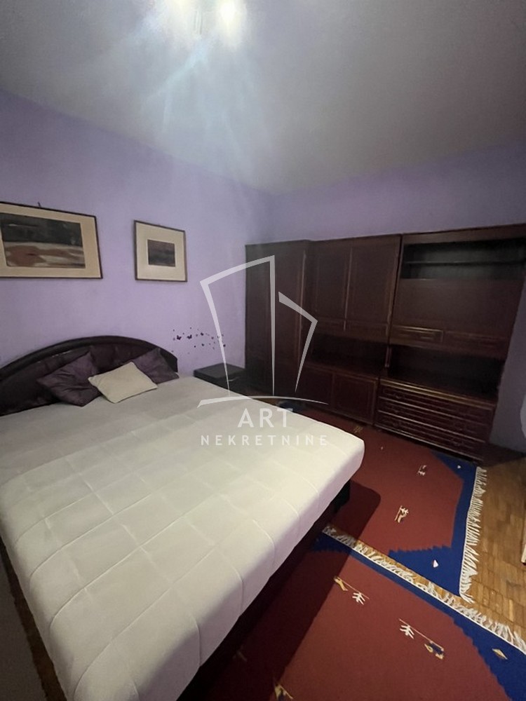 Izdaje se trosoban stan u Skojevskom naselju u Ulici Luke Vojvodića. Stan je u izvornom stanju, sastoji se od dnevne sobe, trpezarije, kuhinje, dve spavaće sobe, kupatila, gostinjskog toaleta, terase za uživanje i lođe na koju se izlazi iz kuhinje.