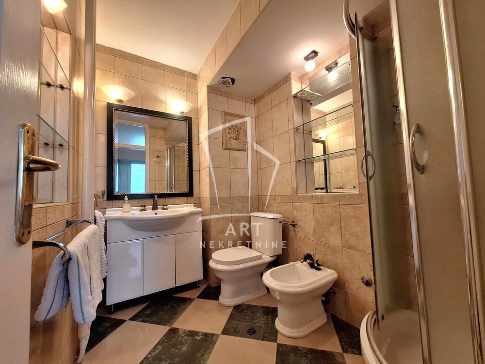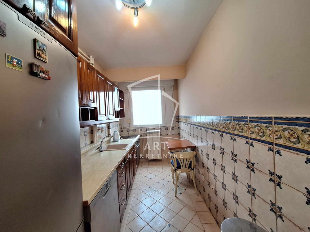 Komforan, kompletno namešten sa svim stvarima tako se i izdaje. U stanu je centralno grejanje. Zgrada poseduje više liftova. Stan je adaptiran i ima mereno 80m2.