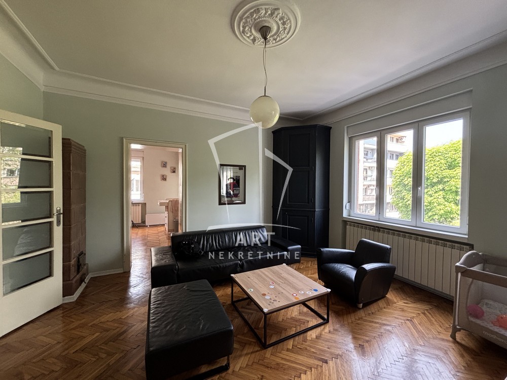 Izdaje se prostran stan merene površine 110m2, sa odličnim rasporedom i mogućnošću korišćenja kako za stanovanje, tako i kao poslovni prostor.