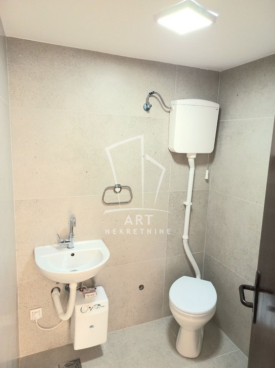 Sastoji se od ulaznog dela, sa izlogom, velike prostorije, toaleta i prostorije od 2,5m2 iznad toaleta.