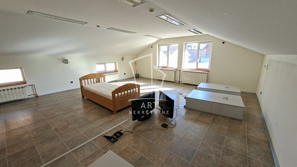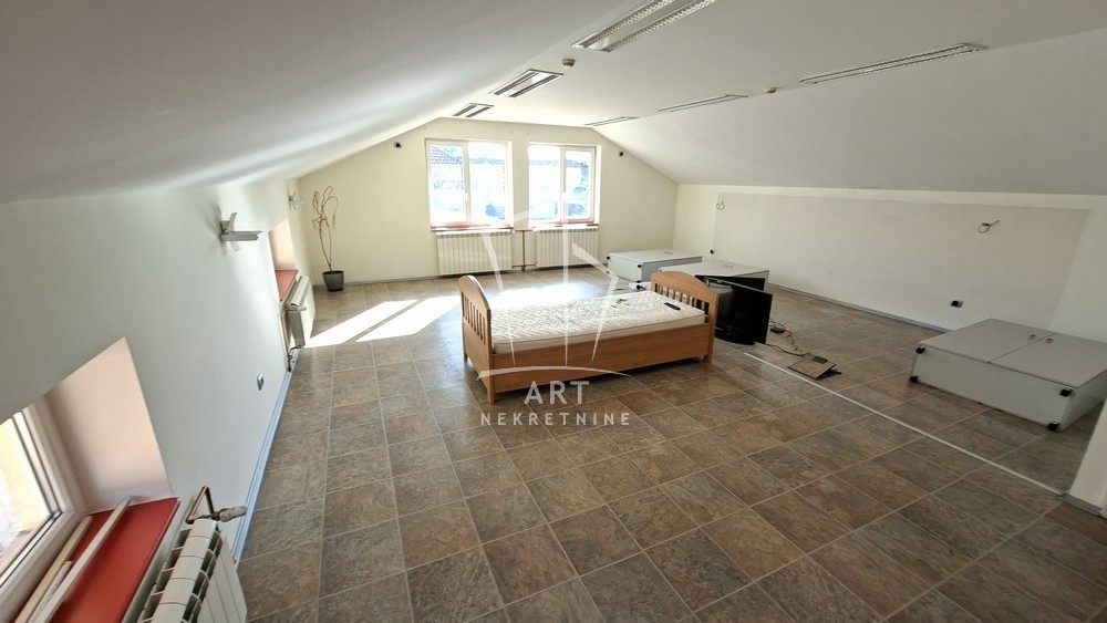 Izuzetan objekat koji se retko pojavljuje u ponudi. Nalazi se u jednoj od najprometnijih ulica u Zemunu,u blizini okretnice autobusa 18 i 83.U neposrednoj blizini je izlaz na auto put Bg-Ns, Bg-Zg kao i Pupinov most. Zaseban prostor sa 4 ara slobodnog i betoniranog placa.U delu do ulice je objekat od 360m2 koji se sastoji od prizemlja,sprata i suterena(po 120m2 svaki) Prizemni deo čine ulaz, prijemni deo,dve velike prostorije(od kojih jedna ima izlaz na dvorište), dva toaleta,čajna kuhinja i komunikacija sa spratom i suterenom. Na spratu su dve velike prostorije,toalet i terasa. U obe etaže na podu su pločice.U suterenu su dve velike prostorije i mesto za toalet.Pod je premazan epoksidnim premazom.Poseduje i lift za jedno paletno mesto.U drugom delu dvorišta je magacinski prostor od oko 120m2 napravljen od sendvič panela,koji se može koristiti i kao radionica. Pored magacina je i velike natkriveni deo. Krov i fasada su kompletno novi. U prostoru je etažno grejanje. Fasada je rađena stiroporim od 15cm,što ceo objekat čini izuzetno energetski efikasnim. Prostor poseduje 7 parking mesta
