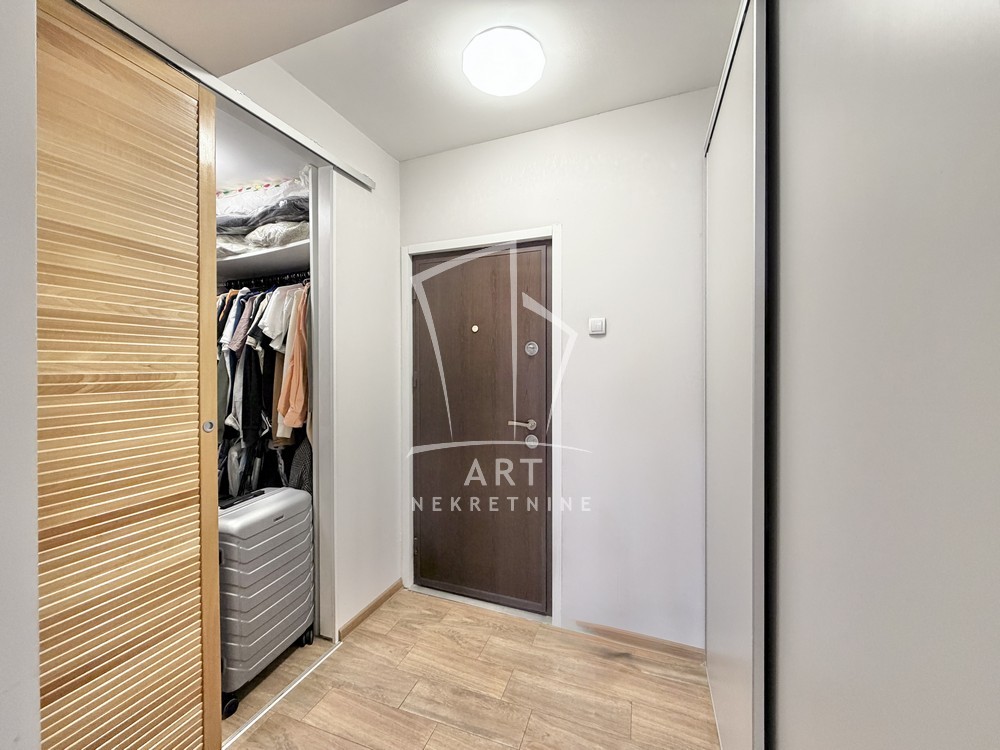 Stan se sastoji od ulaznog hodnika sa prostorom za odlaganje veša, jedne spavaće sobe, kupatila, prostrane dnevne sa trpezarijom i kuhinjom i velike terase od 8m2.