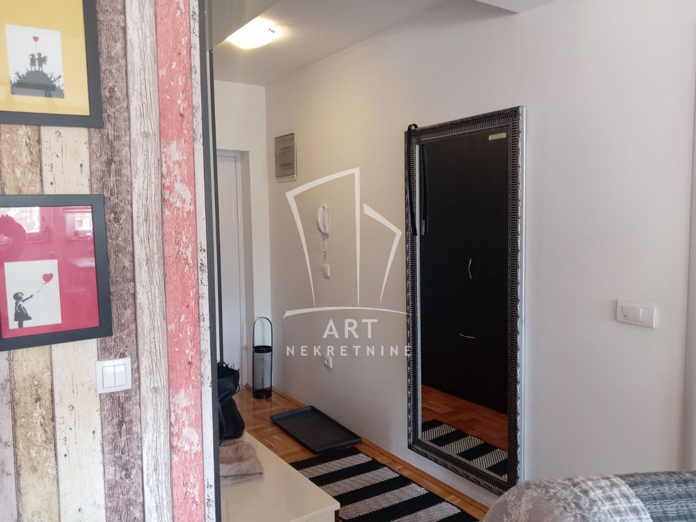 Sastoji se od ulaznog hodnika, savremenog open space prostora sa dnevnim boravkom iz kojeg se izlazi na terasu, kuhinje i trpezarije, spavaće sobe sa izlazom na sopstvenu terasu i kupatila. Grejanje je na struju. Stan ima internet i Total TV.