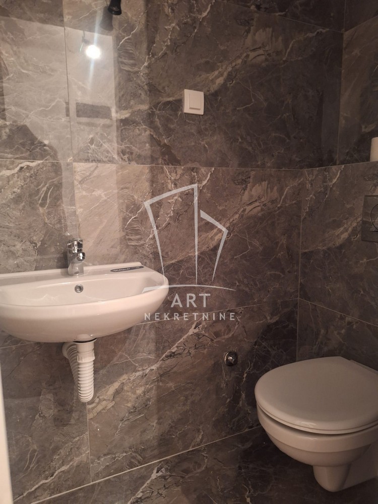 Prostrana dnevna soba sa kuhinjom i trpezarijom, dve spavaće sobe, kupatilo, odvojeni gostinski toalet i terasa.