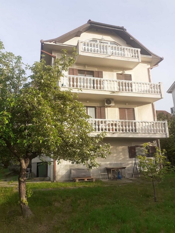 PROSTORIJE:predsoblje,dnevni boravak, kuhinja, trpezarija,5 spavaćih soba, kupatilo, terase, ostava/ privatan parking kao i bašta ispred kuće I iza kuće sa velikim parking mestom za dvoje kola.