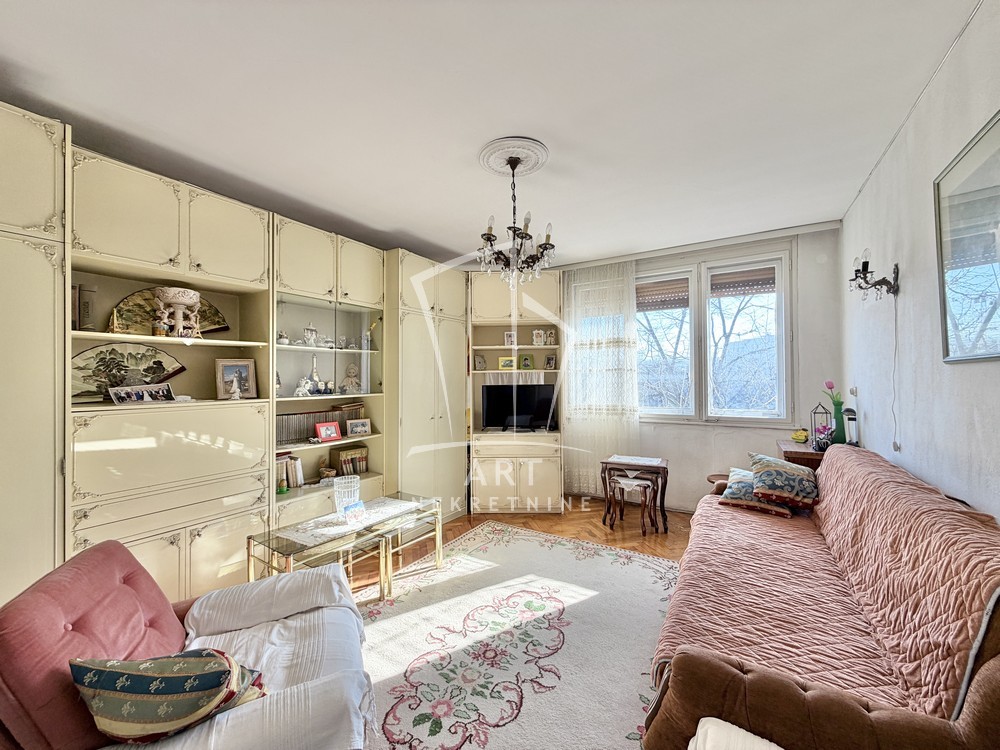 Prostorije: predsoblje, kupatilo, spavaća soba, dnevna soba, kuhinja sa trpezarijom, terasa, podrum.