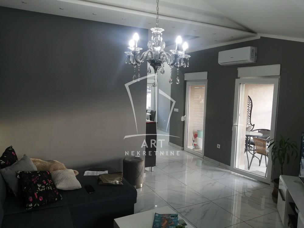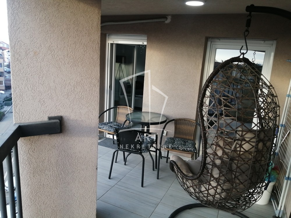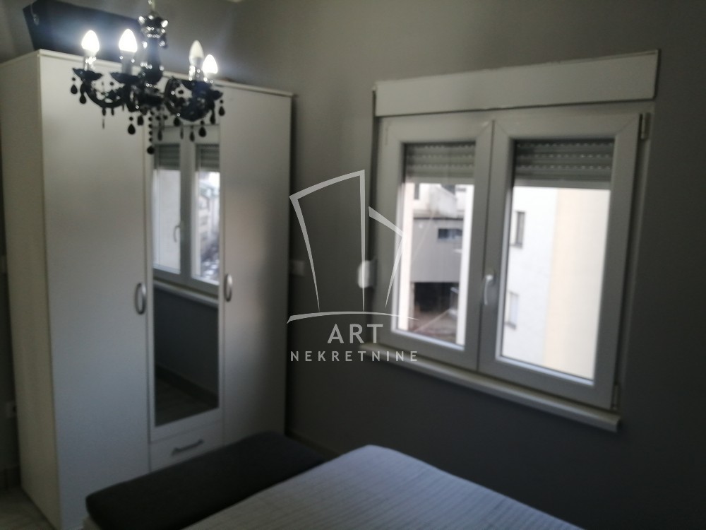 U naselju Vojvode Vlahovića izdaje se prostan, lukszno opremljen dvosoban stan koji se sastoji od velikog dnevnog boravka, trepezarije, odvojene spavaće sobe, kupatila i velike terase.