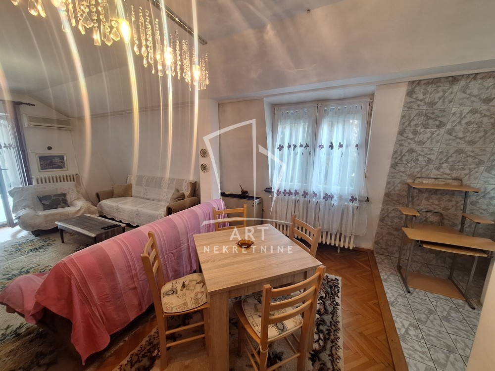 Poseduje spavaću sobu, kuhinju sa tepezarijskim delom, kupatilo,dnevnu sobu i veliku lodju. Niski računi.